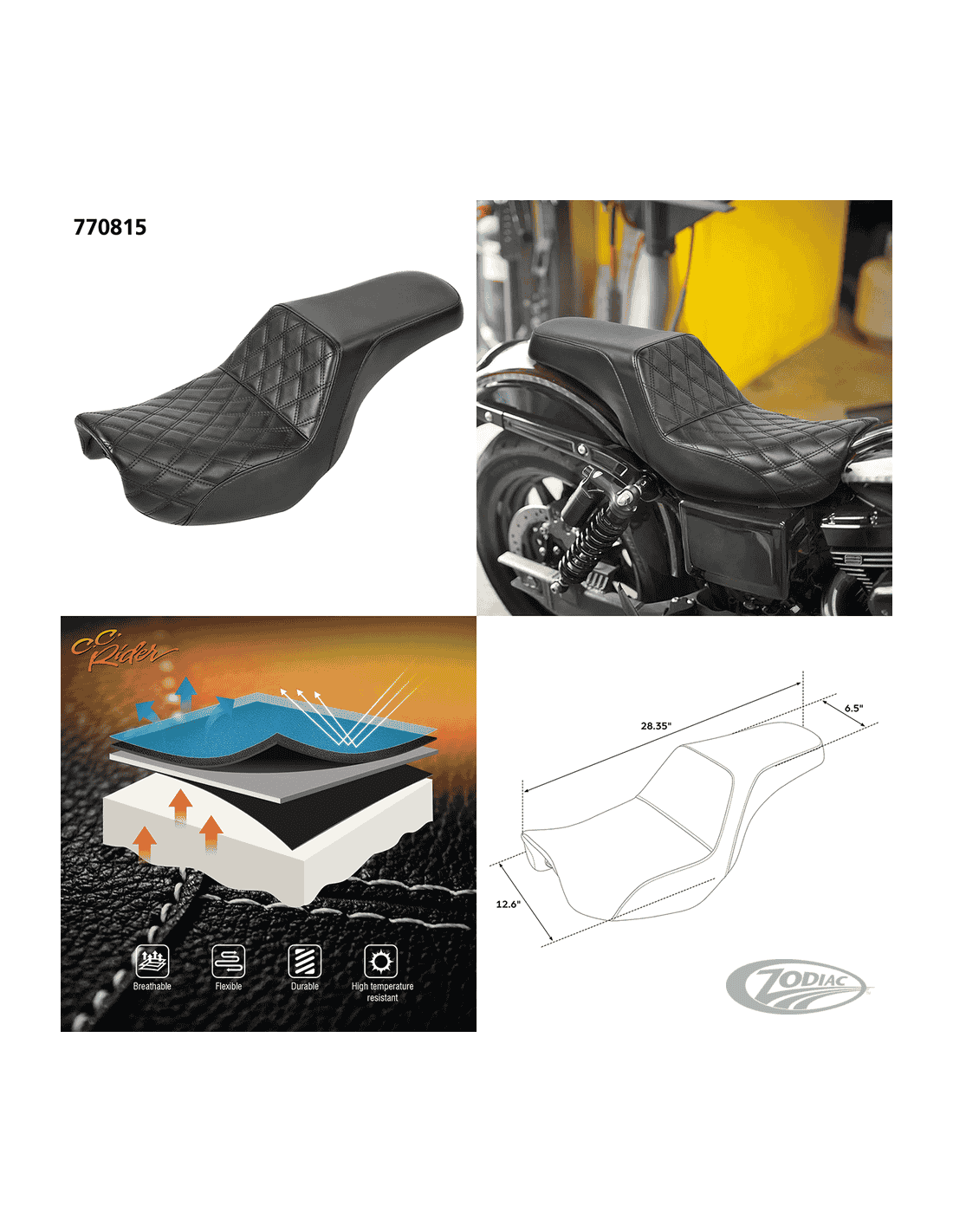 C.C. RiderSedile dal design basso, ideale per chi desidera una distanza ridotta da terra. La forma snella e lunga consente di spostare il corpo nella posizione più adatta alle proprie esigenze. L'uso con un passeggero può richiedere l'acquisto separato di un kit di pedane per il passeggero. La sella è scolpita per rendere più piacevole la permanenza in moto.