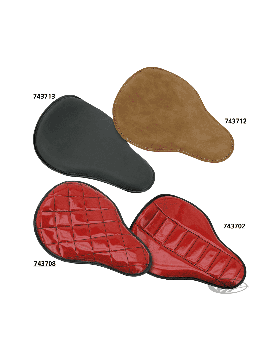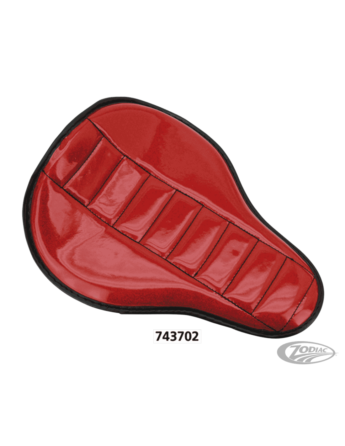 Piccole selle singole con un grande look. Hanno la base in acciaio con 4 perni di montaggio M8 e un rivestimento sottile per un look più slanciato. Sono lunghe 14" (36cm) larghe 10" (25cm) in vari colori incluso rosso metalfalke Old Skool.