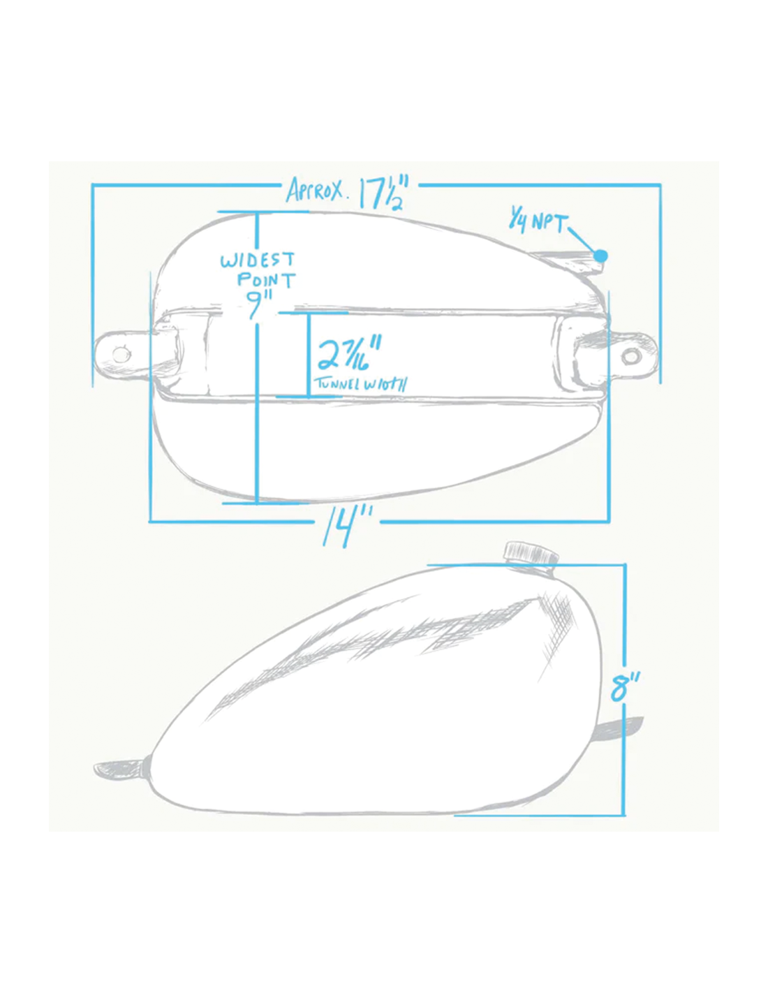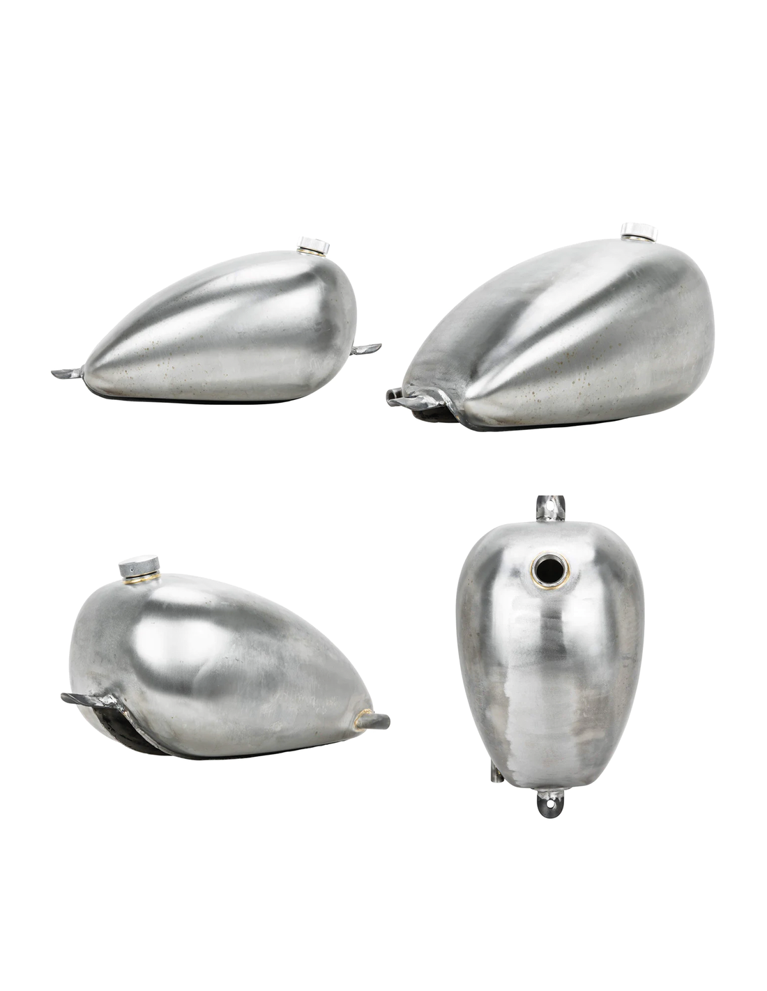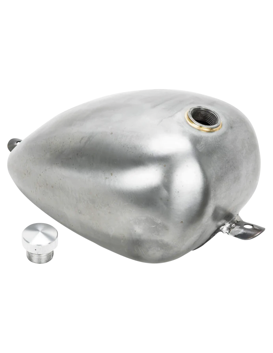 Lowbrow CustomsIl serbatoio King P-Nut è unico nel suo genere, in quanto consente di sfruttare appieno il carburante grazie al bocchettone da 1/4" NPT sul lato sinistro e al piccolo bocchettone di rifornimento posizionato in alto sul serbatoio. Trattandosi di un serbatoio Frisco, si trova in alto sul trave centrale telaio. Se il tappo di rifornimento è troppo arretrato, non è possibile riempire il serbatoio fino in cima senza che il liquido fuoriesca. Questo serbatoio è stato progettato per l'uso universale, in quanto può essere montato con tecniche di fabbricazione di base, come la saldatura di alcuni tappi filettati nella spina dorsale del telaio della moto. Il King P-Nut è stato progettato anche per essere semplicemente imbullonato agli Sportster 1986-2003 utilizzando le staffe adattatore serbatoio Lowbrow ZPN 790224.