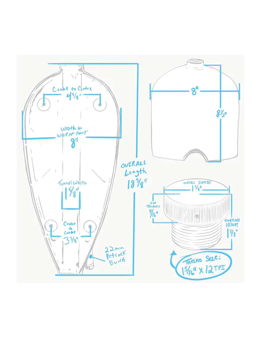 Lowbrow CustomsQuesto serbatoio custom contiene circa 2,5 galloni (9,5 litri) e darà alla vostra moto uno stile che durerà per sempre. È basato su un serbatoio per Sportster con attacco Frisco altamente modificato, perfetto per moto custom, bobber e chopper. Ha una parte superiore e inferiore in acciaio da 16, saldata a TIG e con linguette di montaggio. Viene fornito con un tappo benzina ventilato, in alluminio, con filettatura 1-5/16"-12 ed è accetta accetta rubinetti da 22mm in stile Harley-Davidson.