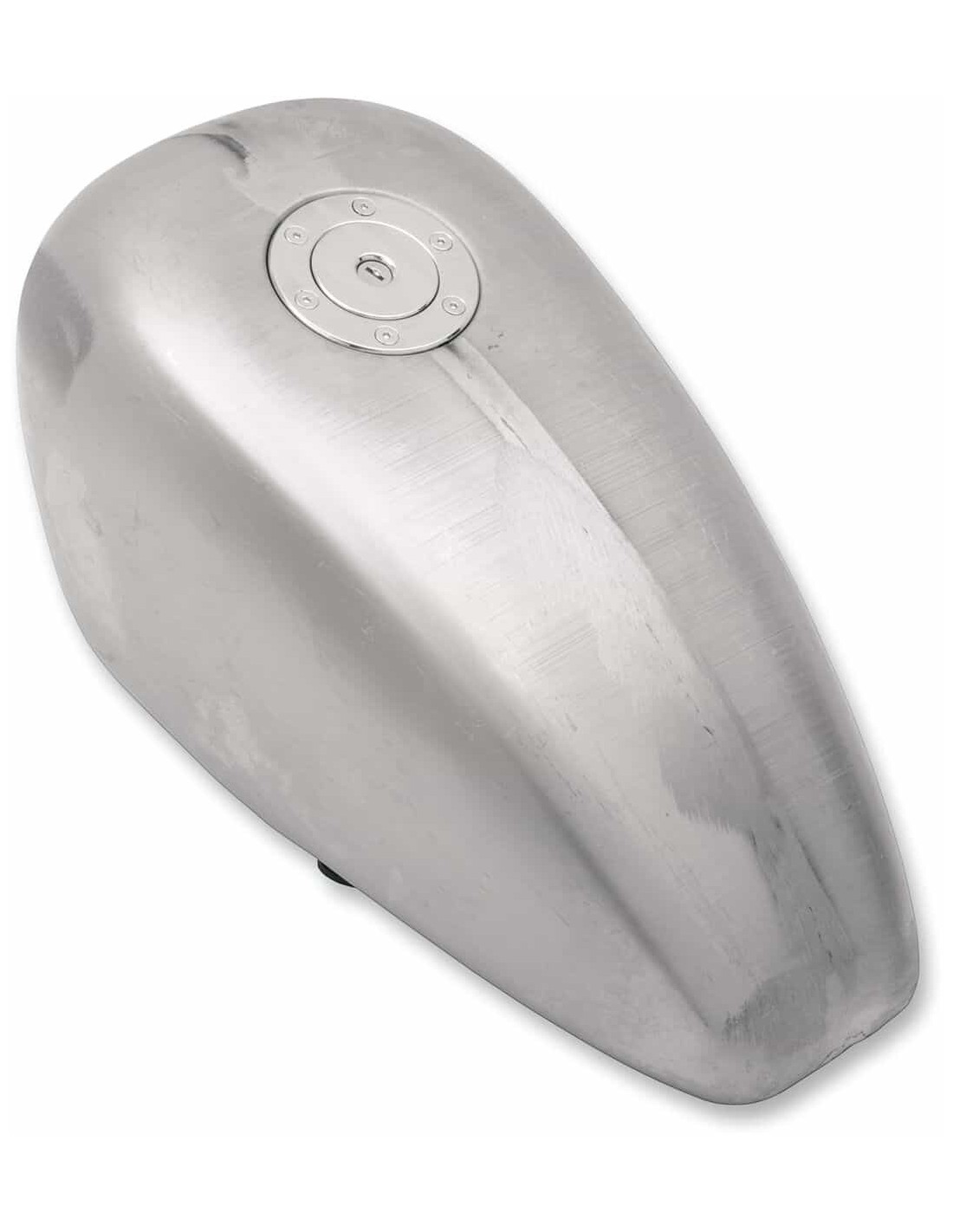 Serbatoio del gas con tappo cromato stile aeronauticoIl serbatoio a fondo piatto imbullonato con montaggio in gomma è realizzato in acciaio di grosso spessore Il serbatoio è da 3,3 galloni Design "tunnel alto" per aggiungere capacità di carburante senza sembrare alto Presenta tappo del serbatoio cromato in stile aerodinamico con chiavi Cuciture rinforzate e linguette di montaggio extra resistenti br>Potrebbe richiedere modifiche alla parte anteriore del sedile e lo spostamento dell'interruttore di accensione su alcuni modelli. Accetta un rubinetto da 22 mm; venduto separatamente.