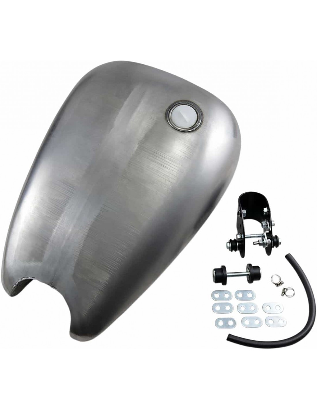 Serbatoio carburante con supporto in gomma QuickBob™ parte superiore liscia con estensioneIl profilo allungato del serbatoio “scompare” in quello della dona sellando alla moto un bellissimo look custom Alcuni serbatoi presentano un foro per la punta della sella, che in alcuni casi dovrà però essere accorciato 2” più lungo rispetto a un serbatoio QuickBob standard Staffe necessarie per il montaggio incluso< /li> Capienza di 3,9 galloni Utilizza un rubinetto benzina da 22 mm Nei modelli a partire dal 1992, se il sistema di sfiato continuo di serie è stato rimosso o disconnesso, potrebbe non essere possibile utilizzare il tappo con sfiato originale, ma è comunque possibile sostituirlo con una versione meno recente del tappo av Richiede il codice articolo DS-390077 kit di riposizionamento bobina di accensione .