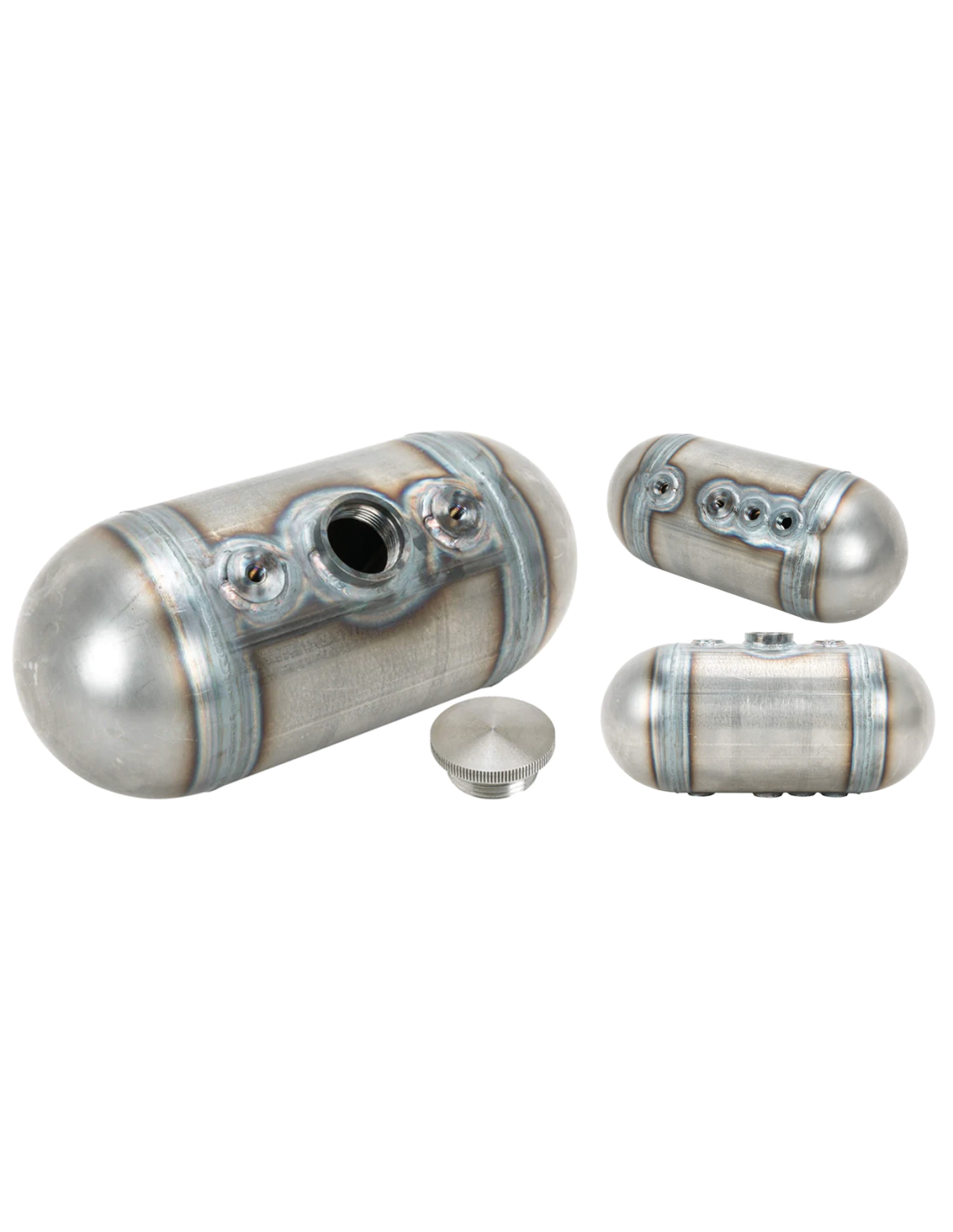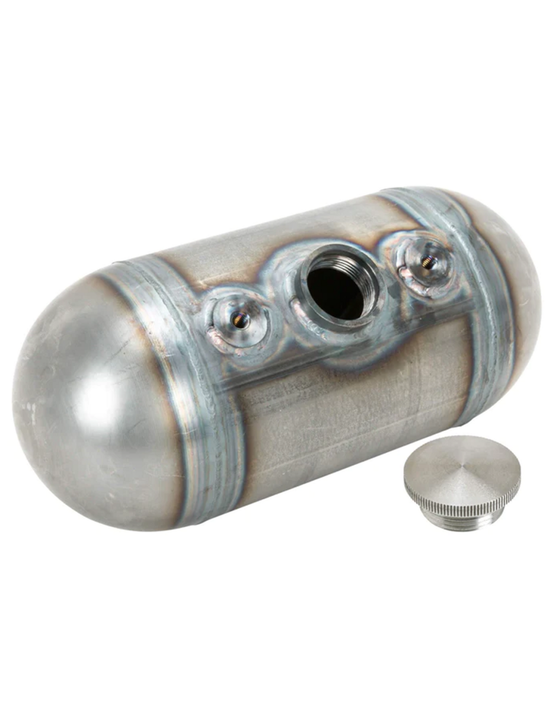 Lowbrow CustomsI serbatoi universali in acciaio Lowbrow Customs sono dotati di due punti di montaggio superiori e uno inferiore con filettatura 5/16-18 per garantire un montaggio sicuro e stabile. Sono stati testati su strada e sono pronti ad affrontare qualsiasi cosa. Hanno un diametro di 12,7cm (5"), e una capacità di 3 quarti di gallone di olio (2,84 litri), sono dotati di raccordi NPT da 1/4 per le linee di alimentazione, ritorno e sfiato e sono completi di tappo di riempimento a vite in alluminio zigrinato.