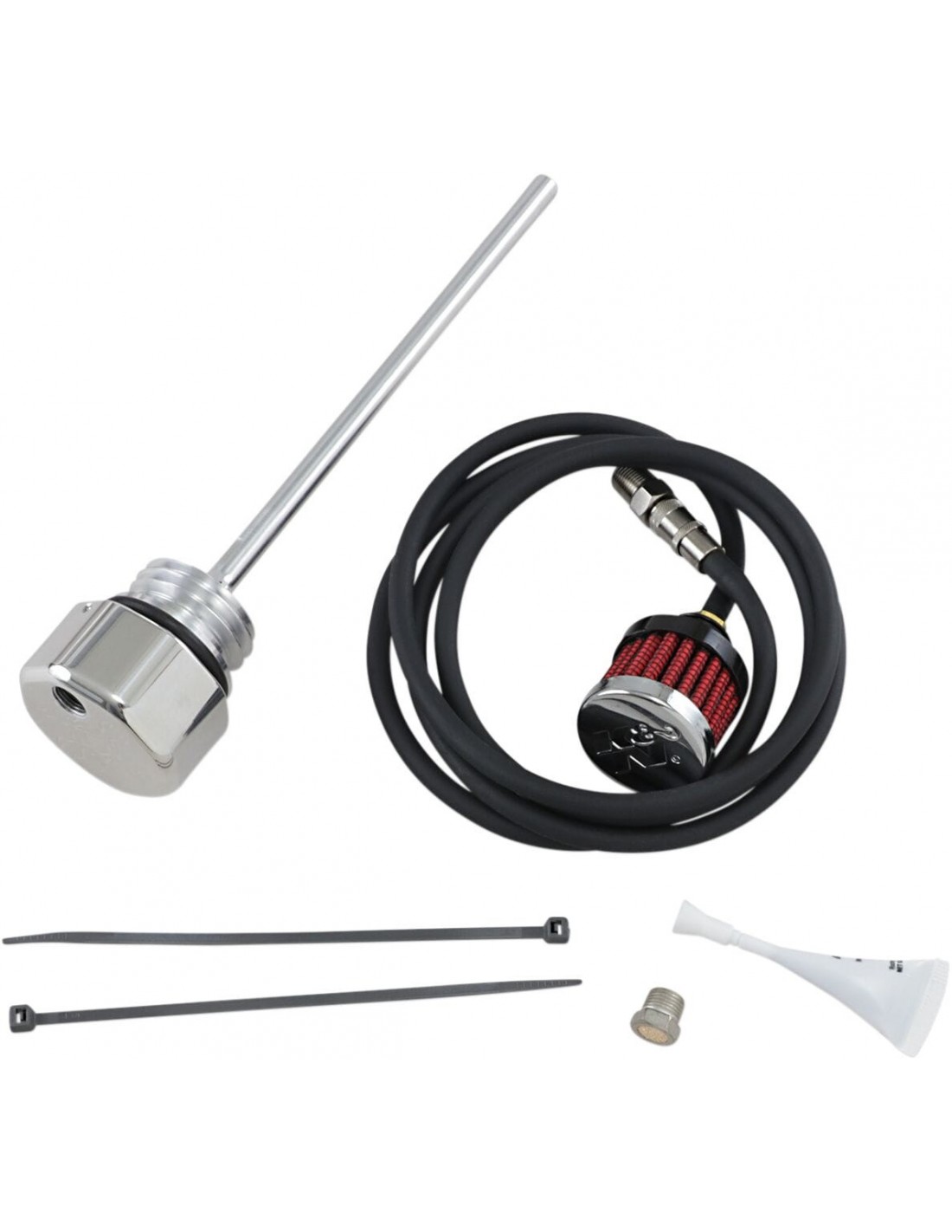 Feuling Oil Pump Corp.Astina di livello ventilatale aste di livello ricavate dal pieno sfiatano/respirano l'eccessiva pressione del carter dal serbatoio dell'olio attraverso uno sfiato in stile pcv, costituito da un sistema di separatore dell'olio, disco forato, elemento filtrante sostituibile e valvola a cerniera a ombrellosi avvita nel beccuccio di riempimento dell'olio di fabbrica come parte di ricambio di serieil "blowby" è la pressione che viene forzata oltre gli anelli e i cilindri, spinta nel basamento e quindi forzata nel serbatoio dell'olio li>i risultati dei test di rifornimento mostrano una diminuzione dei livelli della coppa dell'olio motore, un regime del motore più fluido/regolare, un aumento del consumo di carburante e una diminuzione del trafilamentorimuove l'accumulo indesiderato di pressione del soffiaggio nel serbatoio dell'olioci sono due modi per leggere il livello dell'olio con questa astina, con la bici sul jiffy stand (fhs) full hot stand o con la bici in posizione verticale e livellata (fhu) full hot uprightinclude 2 diverse opzioni di stile di sfiato per l'installazione dell'astina di livello: opzione 1 - raccordo di sfiato con sfiato 1/8 npt con elemento filtrante poroso interno, opzione 2 - raccordo con accoppiatore a disconnessione rapida con tubo in gomma ed elemento filtranteè importante per ottenere il livello corretto di olio caldo nella bicicletta. Feuling consiglia di mantenere il livello dell'olio al 90%-99% quando è caldol'apertura di raccolta dell'olio si trova sul lato destro del motore. Lasciare la bici al minimo o riscaldarsi sul cavalletto riempirà naturalmente il carter del motore e distorcerà il livello dell'olio nel serbatoioprodotta negli stati unitiquesta astina si surriscalda, utilizzare un guanto quando si controlla il livello dell'olio.feuling consiglia vivamente di non utilizzare il limitatore di giri e di utilizzare olio convenzionale nei motori m8 per mantenere la tenuta dell'anello e ridurre al minimo il trafilamento.