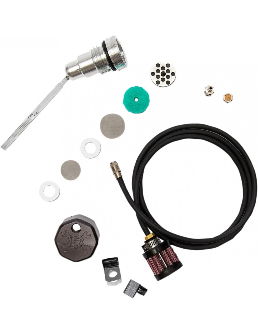 Feuling Oil Pump Corp.Astina di livello ventilatale aste di livello ricavate dal pieno sfiatano/respirano l'eccessiva pressione del carter dal serbatoio dell'olio attraverso uno sfiato in stile pcv, costituito da un sistema di separatore dell'olio, disco forato, elemento filtrante sostituibile e valvola a cerniera a ombrellosi avvita nel beccuccio di riempimento dell'olio di fabbrica come parte di ricambio di serieil "blowby" è la pressione che viene forzata oltre gli anelli e i cilindri, spinta nel basamento e quindi forzata nel serbatoio dell'olio li>i risultati dei test di rifornimento mostrano una diminuzione dei livelli della coppa dell'olio motore, un regime del motore più fluido/regolare, un aumento del consumo di carburante e una diminuzione del trafilamentorimuove l'accumulo indesiderato di pressione del soffiaggio nel serbatoio dell'olioci sono due modi per leggere il livello dell'olio con questa astina, con la bici sul jiffy stand (fhs) full hot stand o con la bici in posizione verticale e livellata (fhu) full hot uprightinclude 2 diverse opzioni di stile di sfiato per l'installazione dell'astina di livello: opzione 1 - raccordo di sfiato con sfiato 1/8 npt con elemento filtrante poroso interno, opzione 2 - raccordo con accoppiatore a disconnessione rapida con tubo in gomma ed elemento filtranteè importante per ottenere il livello corretto di olio caldo nella bicicletta. Feuling consiglia di mantenere il livello dell'olio al 90%-99% quando è caldol'apertura di raccolta dell'olio si trova sul lato destro del motore. Lasciare la bici al minimo o riscaldarsi sul cavalletto riempirà naturalmente il carter del motore e distorcerà il livello dell'olio nel serbatoioprodotta negli stati unitiquesta astina si surriscalda, utilizzare un guanto durante il controllo del livello dell'olio.