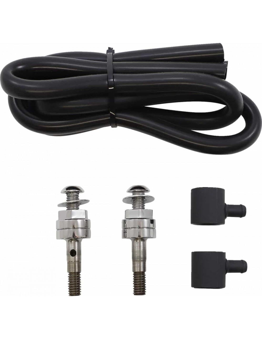 Kit di sfiato esterno per filtro dell'aria di sovralimentazione AssaultSfiata gli sfiatatoi nell'atmosfera invece di far ricircolare la nebbia d'olio attraverso l'aspirazione Converte il filtro dell'aria di sovralimentazione Assault da respirazione interna a esterna Prodotto negli USA Adatto a tutti i motori Twin Cam dotati di filtri dell'aria Assault Charge.
