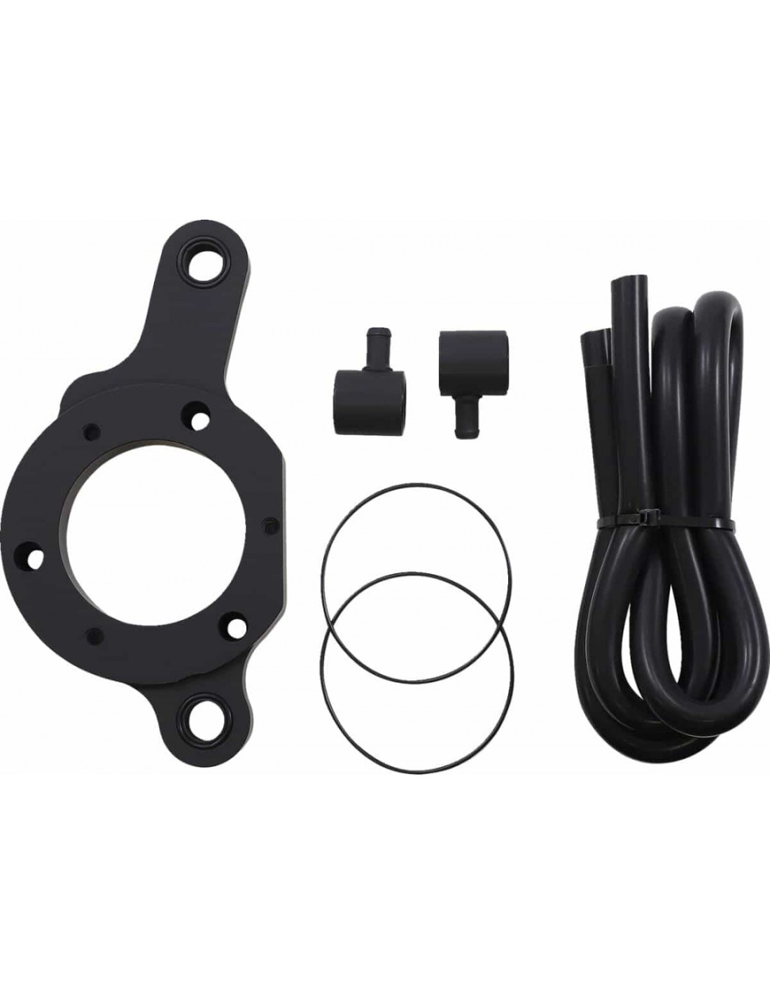 Kit di sfiato esterno per filtro dell'aria di sovralimentazione AssaultSfiata gli sfiatatoi nell'atmosfera invece di far ricircolare la nebbia d'olio attraverso l'aspirazione Converte il filtro dell'aria di sovralimentazione Assault da respirazione interna a esterna Prodotto negli Stati Uniti Adatto a tutti i motori M8 dotati di filtri dell'aria Assault Charge.