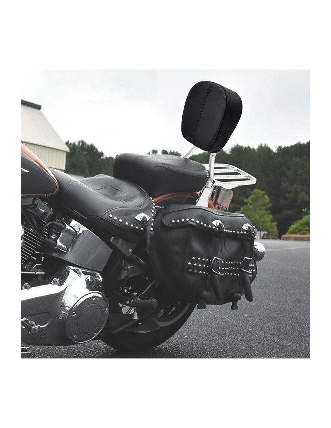 Per FLST Heritage, FLSTC Heritage Classic & FLSTS Heritage Springer 1986-2017, FLSTF Fat Boy 1987-2006, FLSTN Deluxe 2005-2017, FXST Standard 1984-2005, FXSTB Night Train 1999-2005, FXSTC Custom 1986-1999, FXSTS Springer 1988-2005 e FXSTSB Bad Boy 1995-1997, Kit con piastre laterali cromate a montaggio rigido, sissy bar cromato, cuscino nero e portapacchi cromato (piastre laterali OEM 53374-03, sissy bar 52736-85A, cuscino 52348-97 o 52347-97, portapacchi 50300030)