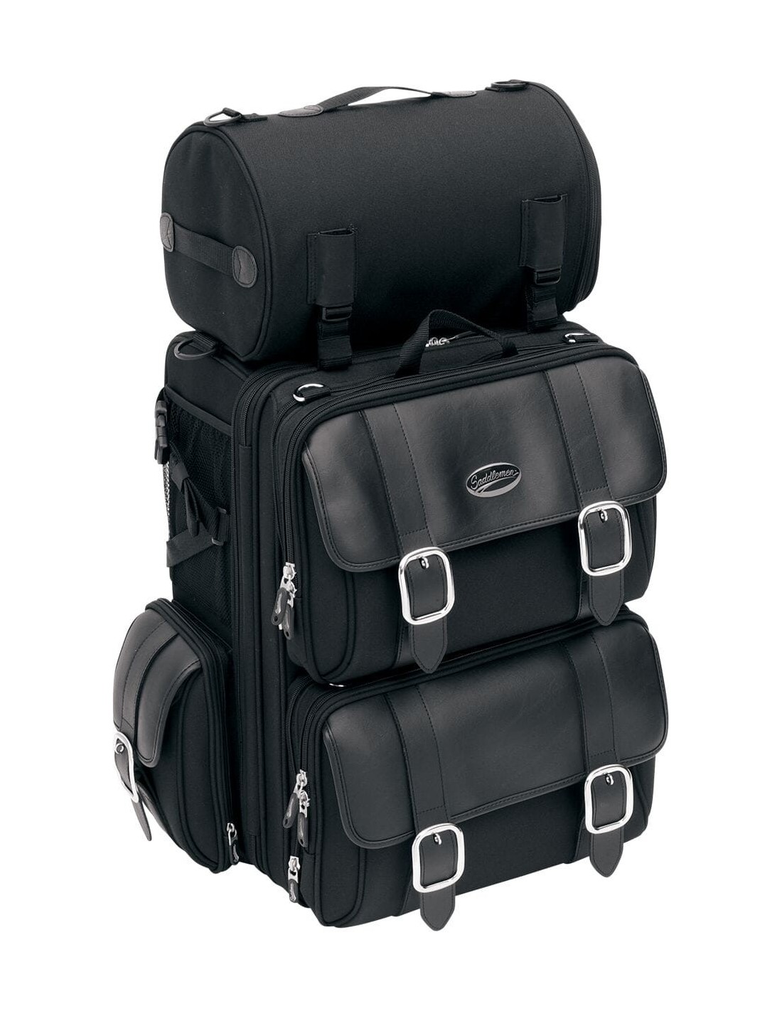 SaddlemenBorsa sissybar deluxe s3200deampia borsa progettata per trasportare tutto il necessario per un lungo viaggio su strada; la borsa può essere ampliata fino a una profondità di 2-1/2” per soddisfare qualsiasi esigenza di spazio sistema di montaggio completamente regolabile installabile nel giro di pochi secondi su cuscini per sissybar di qualsiasi dimensione e stile; una volta che è stato adattato alle dimensioni del tuo cuscino, non sarà più necessario regolarlo struttura rigida per evitare che la borsa si afflosci anche quando è vuota borsa rullo r850 inclusa per una maggiore capacità di carico; cinghie fermabagagli superiori incluse per fissare la borsa rullo o giacchetti, attrezzatura da pioggia, ecc. maniglia sulla parte superiore, spallacci e cinghia a tracolla per facilitarne il trasporto quando la borsa non è installata sulla moto scomparto interno per oggetti da ufficio, tiranti delle cerniere chiudibili e fibbie realizzato in materiale saddletuff™ da 1200 denari impermeabile, resistente alle intemperie e ai raggi uv e pannelli in saddlehyde™ di similpelle privi di manutenzione espandibile fino a 15" di profondità nota bene: per tutte le borse sissybar, è necessario utilizzare un portapacchi come supporto.
