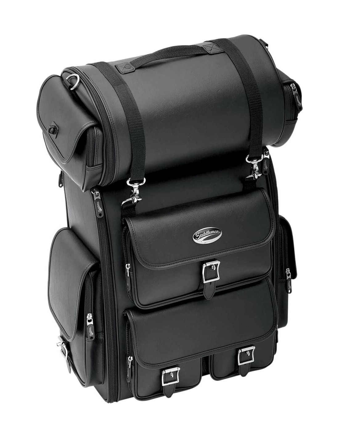SaddlemenBorsa sissybar ex2200 con borsa rullole due aperture laterali integrali garantiscono un facile accesso all'attrezzatura trasportata senza dover rimuovere la borsa dalla moto sistema di montaggio completamente regolabile installabile nel giro di pochi secondi su cuscini per sissybar di qualsiasi dimensione e stile; una volta che è stato adattato alle dimensioni del tuo cuscino, non sarà più necessario regolarlo la struttura rigida supporta il pilota durante la guida e può essere utilizzata come appoggio sulla schiena quando la borsa viene trasportata in spalla li> tasche esterne multiple struttura interna regolabile copertura antipioggia inclusa in materiale composite in pelle pieno fiore resistente ai raggi uv borsa rullo inclusa per una maggiore capacità di carico dimensioni: 15" larg x 18" alt x 8" prof. La borsa rullo misura 14" larg x 8½" alt x 8½" prof li>montaggio universale.