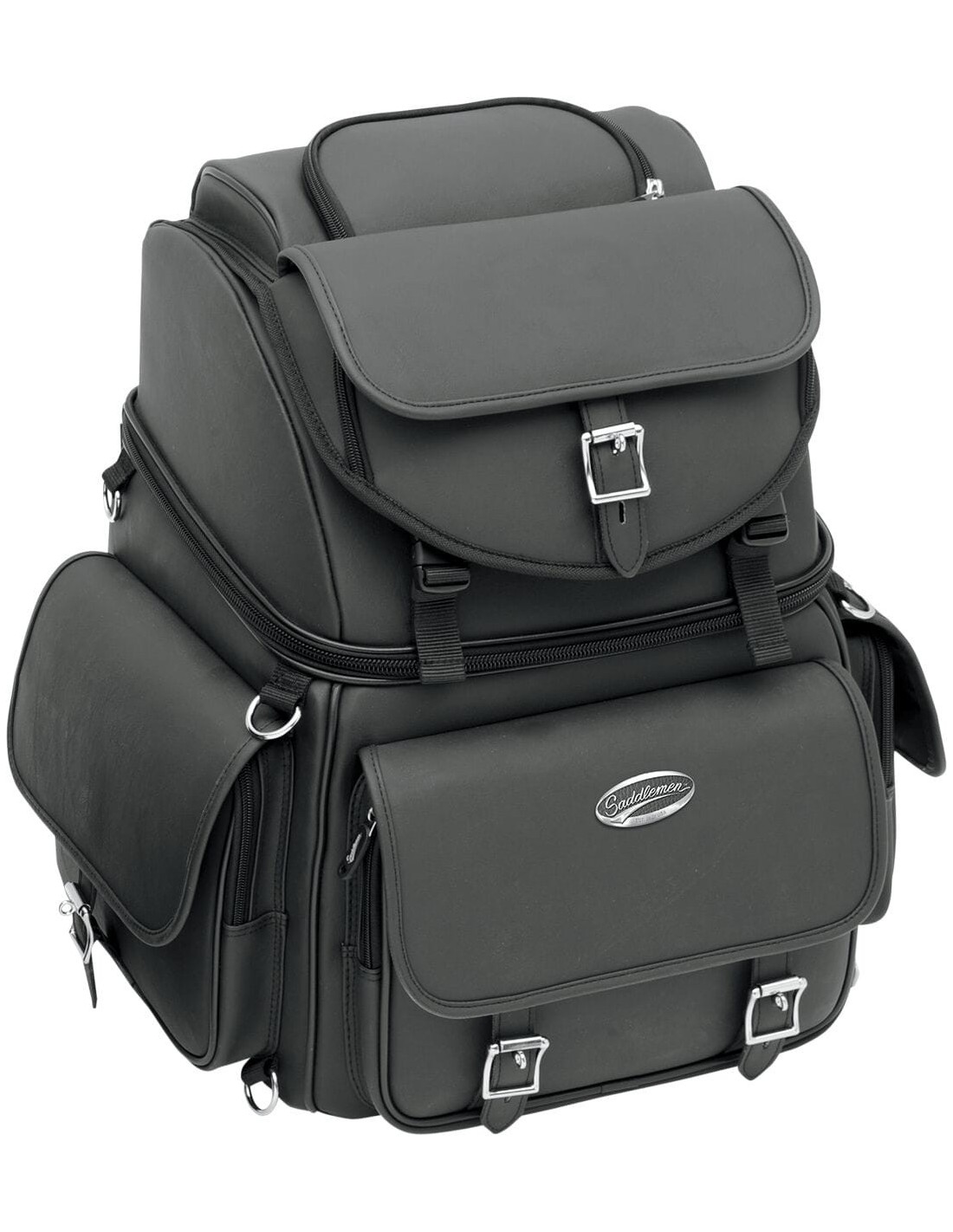 SaddlemenBorsa combinata da schienale, sella passeggero e sissybar br3400excombinazione di resistenti materiali in pelle pieno fiore per un look perfetto su ogni tipo di moto struttura interna rigida per evitare che la borsa si afflosci anche quando è vuota sissybar non necessario include due sistemi di montaggio: un'imbracatura versa-mount™ da sella o un sistema di cinghie regolabile per il montaggio su sissybar grazie ai quali è possibile fissare la borsa alla sella, al portapacchi o al sissybar della tua moto cuscino schienale incluso che può essere regolato per un comfort maggiore del passeggero o del pilota robusta maniglia con impugnatura per un comodo trasporto della borsa gli spallacci rimovibili consentono di trasportare la borsa come uno zaino con due ampi scomparti principali per il caricamento dal lato superiore scomparto imbottito per laptop di piccole dimensioni quattro tasche esterne e cinque tasche interne a rete ogni cinghia è dotata di fibbie laterali facili da usare e fibbie cromate decorative per un tocco di stile in più il coprisella antipioggia con cordino protegge la borsa dall'azione degli agenti atmosferici la patta superiore può essere regolata per il trasporto di un giacchetto mini lucchetto per una maggiore sicurezza (include chiavi aggiuntive) dimensioni: 19” alt x 14” larg x 12” prof; capacità di 55,7 litri per il trasporto di un casco integrale e di altra attrezzatura montaggio universale.