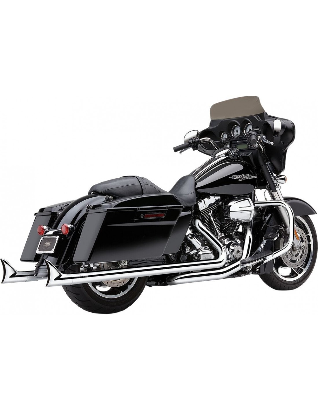 CobraSistema di scarico doppio speedstercombina il design dello scarico powerport duals e il famoso cobra speedster per uno stile elegante a doppia canna con un tocco in più presenta le prestazioni di uno scarico 2 in 1 e l'aspetto pulito di un impianto di tipo tradizionale dà il massimo ai bassi e ai medi regimi ed è pertanto la soluzione ideale per touring e guida su strada; consente inoltre un aumento di potenza su tutta la gamma di regimi le protezioni paracalore singole e integrali da 2,5 pollici conferiscono un aspetto senza soluzione di continuità ha un suono eccezionale potenziato dalla speciale tecnologia crossover powerport