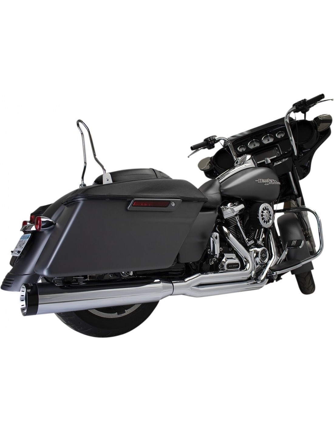 Sistema di scarico outlaw 2:1progettato per aumentare potenza e coppia fornendo allo stesso tempo un livello sonoro aggressivo a bassa frequenza da 1,75" a 1,875" a 2" ad alta- collettori primari a gradini calibro 16 di portata con collettore da 2,5" diametro di 4,5", silenziatore hp-plus calibro 16 con ingresso da 2,5" deflettore assorbente rimovibile da 1,5" con inversione da 3" uscita conica per massimizzare la coppia; il deflettore è avvolto in lana di acciaio inossidabile e fibra di vetro ad alta temperatura per un tono ricco e morbido scudi termici da 2,50", 220°, calibro 16 tappi o2 da 18 mm e 12 mm saldato nelle primarie tubo ghost opzionale disponibile separatamente per dare un aspetto 2 in 2 prodotto negli usa attacchi venduti separatamente.