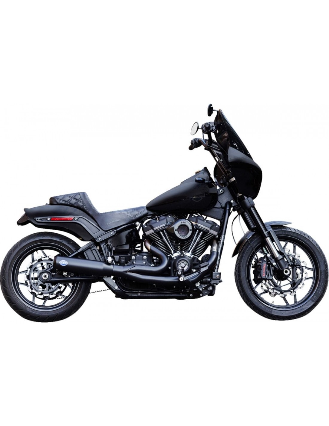 S&S CycleSistema di scarico qualifier 2 in 1scudi termici completi sui collettori anteriore e posteriore costruzione del collettore a gradini in acciaio inossidabile s&s tappo terminale ispirato alle gare solo per uso in competizioni su percorsi chiusi, non destinato all'uso su strada prodotto negli stati uniti