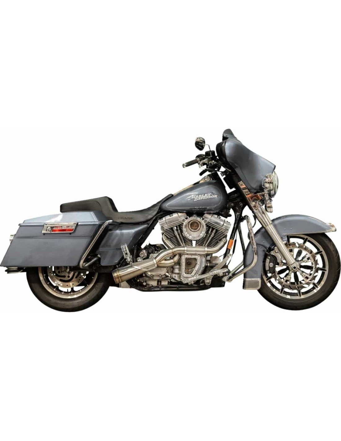 Sistema di scarico Big Sexy 2 in 1Realizzato per motori Twin Cam di grande potenza Collettore a 3 gradini, fusione ad alto flusso e design del silenziatore Doppio giunto scorrevole per espansione e qualità di tenuta Realizzato in acciaio inossidabile piegato a mandrino di alta qualità Scudo termico in stile assalto personalizzato per un look unico Realizzato con orgoglio negli Stati Uniti