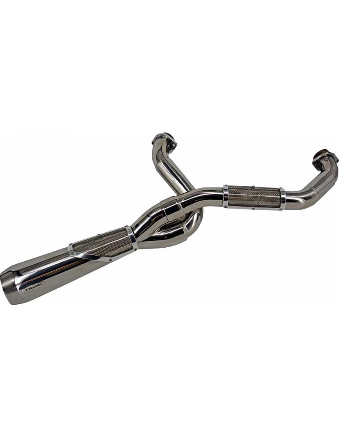 TraskSistema di scarico 2 in 1 Big SexyDesign del collettore a tre incrementi con silenziatore con tubo di raccordo sdoppiato Giunti scorrevoli doppi per l'espansione termica e la tenuta dello scarico Struttura in acciaio inossidabile curvata con mandrino di alta qualità Le protezioni paracalore in stile Assault Custom donano un look unico Made in USA li> Include tutto il materiale e staffe necessari per il montaggio Consigliato per motori M8 da 117" e più grandi che producono oltre 140 cavalli.