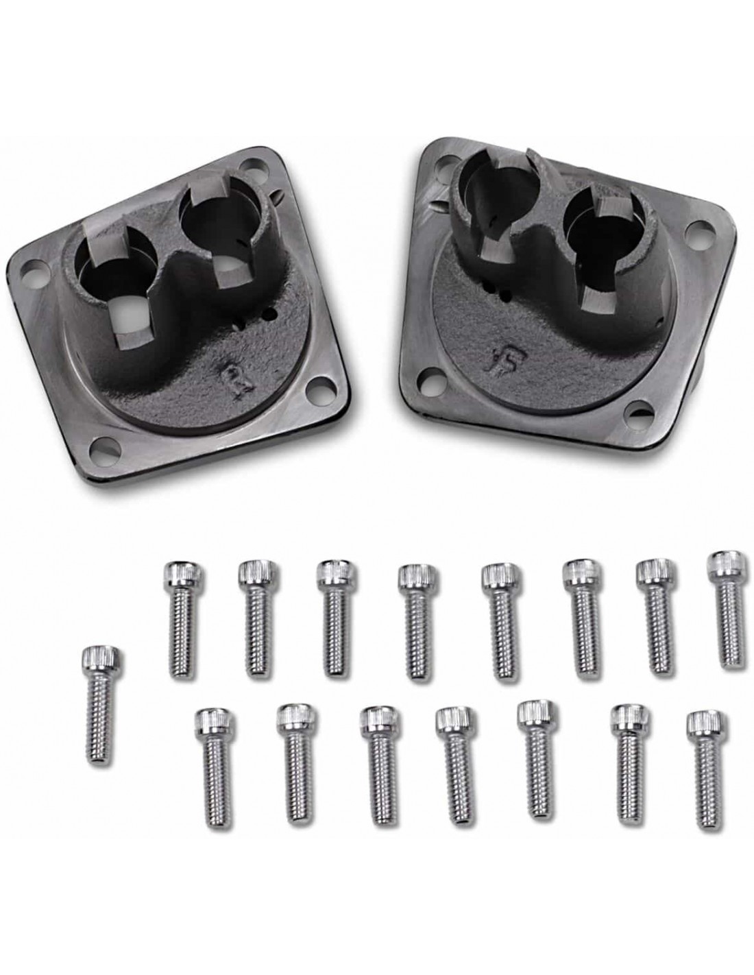 Drag SpecialtiesBlocchi punterieForniti completi di due set di viti a brugola (1/4"-24 per 66-E76 e 1/4"-20 per L76-84), completamente lavorati e pronti per l'installazione In resistente ghisa con finitura nera o cromata Compatibile anche con motori Panhead