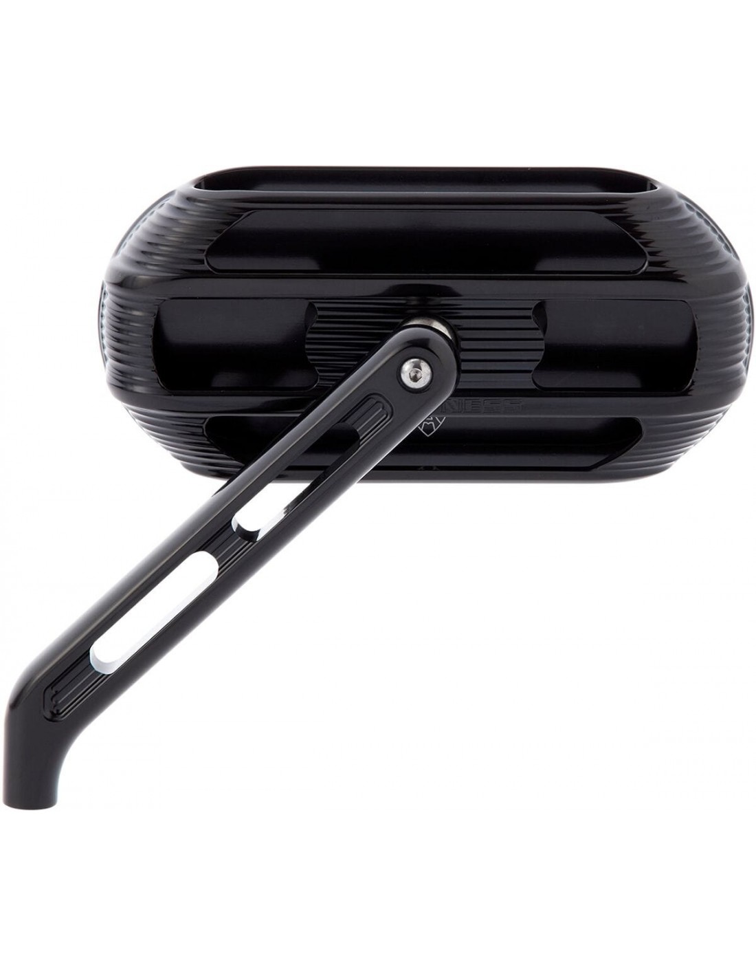 ArlennessSpecchietto lateralespecchietto ovale ispirato dal filtro aria ad angolo sidekick alloggiamento specchietto e stelo forgiato in alluminio billet materiale snodabile interno in acciaio inossidabile ad alta resistenza materiale di montaggio metrico e standard incluso dettaglio lavorato a cnc visto da tutti gli angoli logo arlen ness inciso a laser