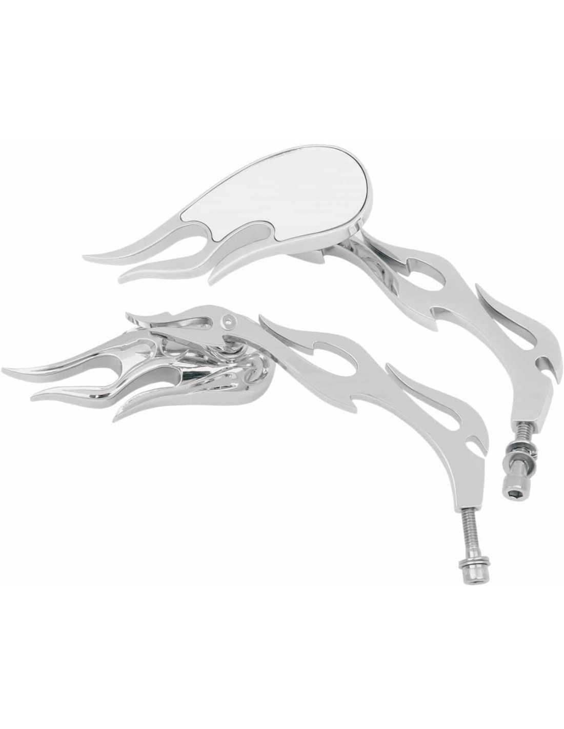 Drag SpecialtiesSpecchietti pressofusi FlameStruttura pressofusa lucidata e cromata Gli specchietti hanno steli lunghi 6" Materiale per il montaggio in dotazione