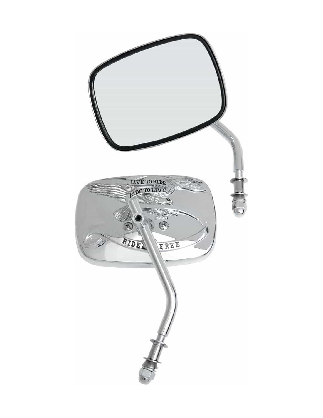Drag SpecialtiesSpecchietti personalizzati “Live To Ride”Design leggermente in rilievo sul retro dello specchietto