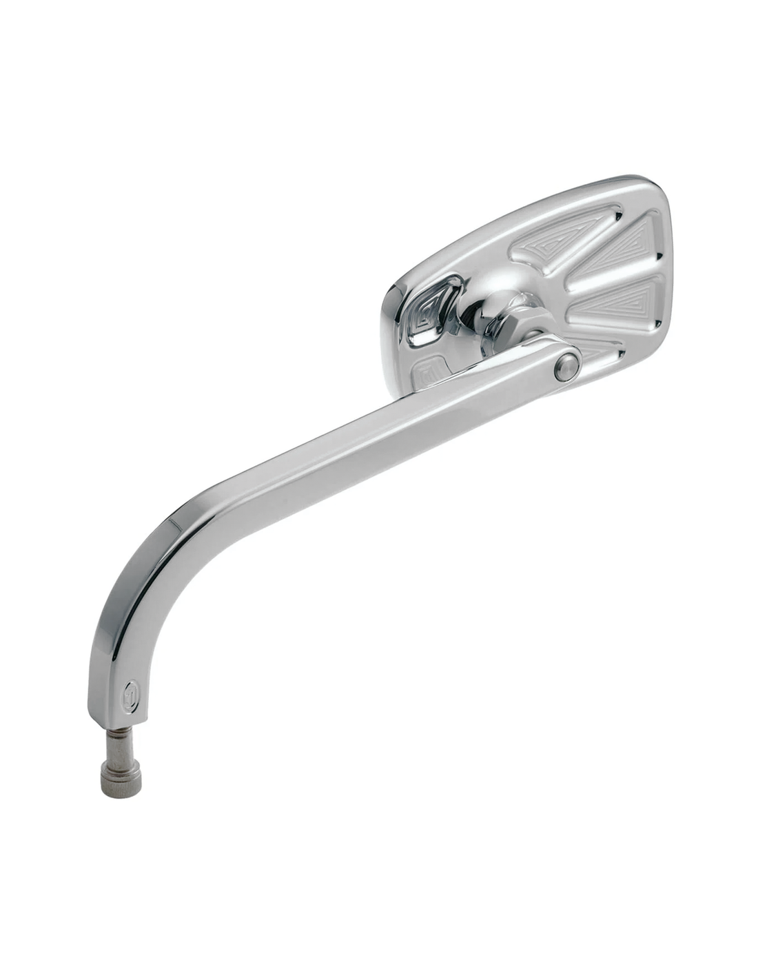 Joker MachineSpecchietti solidi, semplici e regolabili che funzionano che si installano direttamente sulle Harley-Davidson. Le teste degli specchietti possono essere bloccate in posizione o regolabili e ruotano su un giunto sferico in acciaio inossidabile esente da corrosione che garantisce un'azione super fluida e una lunga durata. Lavorati a controllo numerico in alluminio billet 6061 con finitura anodizzata nera o cromata. Gli steli sono filettati 5/16"-24 UNF, i corti sono lunghi come gli specchietti Harley di serie, i lunghi superano di 3" (7,5cm) la lunghezza di serie. L'installazione su Indian e sulla maggior parte delle altre moto metriche richiede l'acquisto separato di un adattatore per specchietti.
