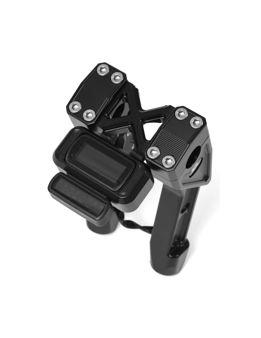 Questi alloggiamenti sono pronti per essere avvitati ai riser Next Level in alluminio billet per moto. Questi riser, con finitura anodizzata nera, sono dotati di canali coperti per il passaggio dell'interruttore del manubrio e del cablaggio della strumentazione. I riser sono inoltre dotati di un morsetto superiore monoblocco con design a "X" che rafforza la sensazione di sicurezza e resistenza.