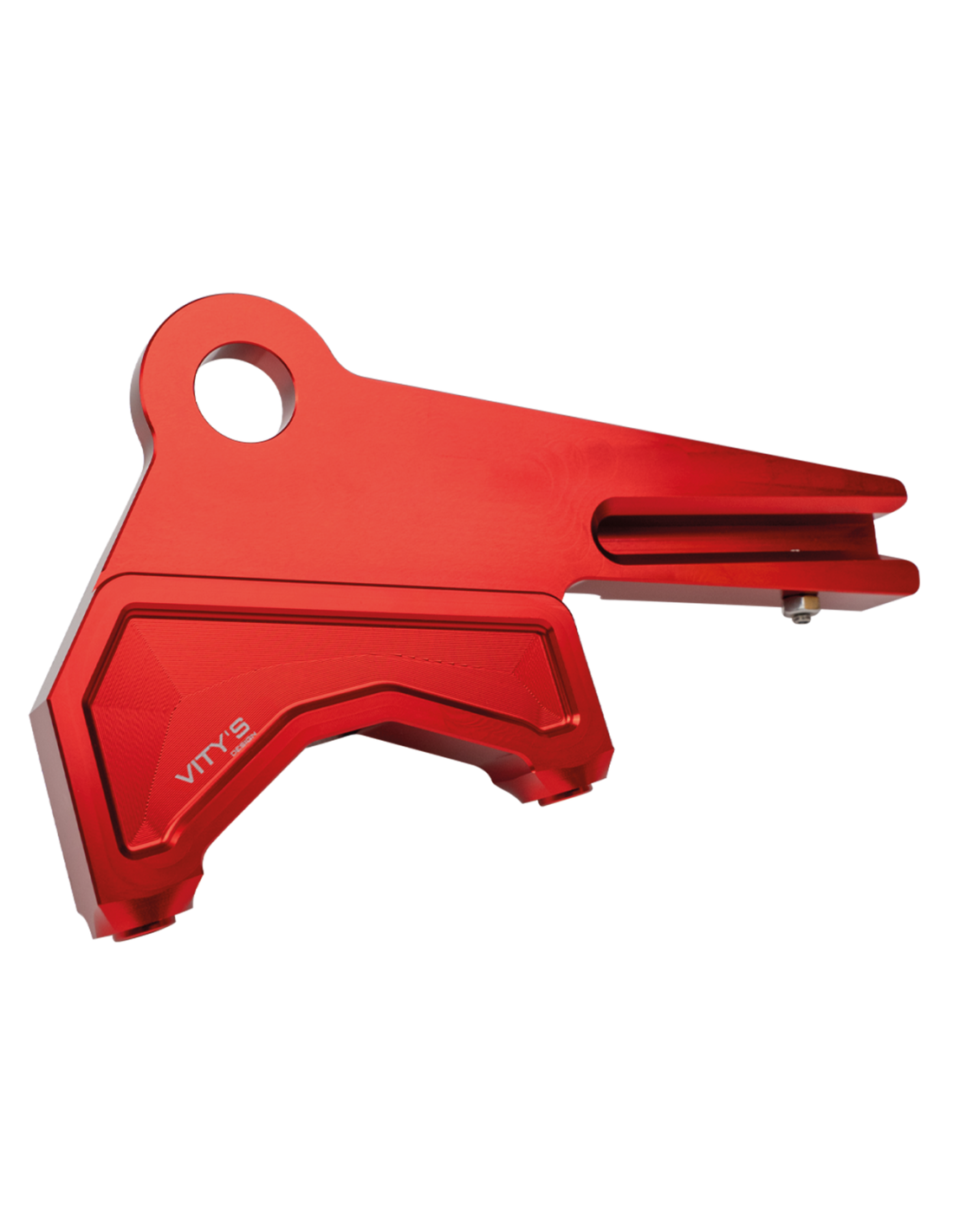 Vity's DesignQueste staffe consentono di installare pinze freno di tipo radiale su forcelloni di serie o Vity. Sono da utilizzare con pinze radiali con interasse tra i bulloni di 4 1/4" (108mm), come le nostre pinze PM Radial a 4 pistoncini. Funzionano anche con pinze di altre marche con la stessa distanza tra i bulloni. Le staffe sono lavorate a CNC da alluminio billet e sono disponibili in alluminio grezzo o con finitura anodizzata.