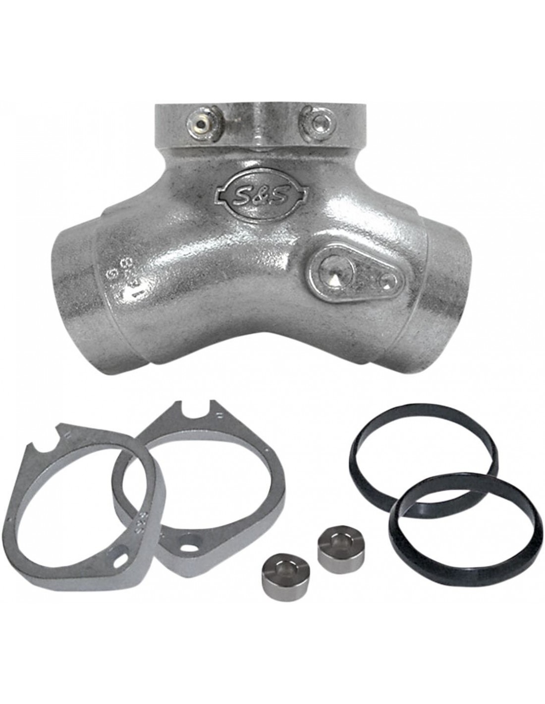 Kit di conversione collettore per evolution 80"include raccordo s&s performance, flangia di montaggio, due o-ring appositamente modellati e due distanziai da 0,350” per il filtro aria di serie o la staffa di supporto del carburatorenon è soggetto a crepe ea fuoriuscite come i raccordi in gomma omologati di serieil kit converte il raccordo di serie evolution di 80” in uno a raccordo più rigidomade in usaper modelli harley davidson evolution big twin 80" '84-'99 se viene utilizzato un carburatore a flangia o un adattatore. Non funziona con i carburatori s&s serie g.