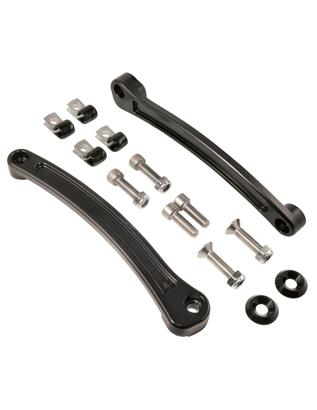 Joker MachineCon queste guide parafanghi, la vostra Scout assume l'aspetto dei montanti dei parafanghi. Ottimi anche per coloro che desiderano rimuovere il fanale posteriore e l'indicatore di direzione di serie e utilizzare invece luci posteriori/freni multifunzione. Costruzione in alluminio billet con finitura nera anodizzata dura.