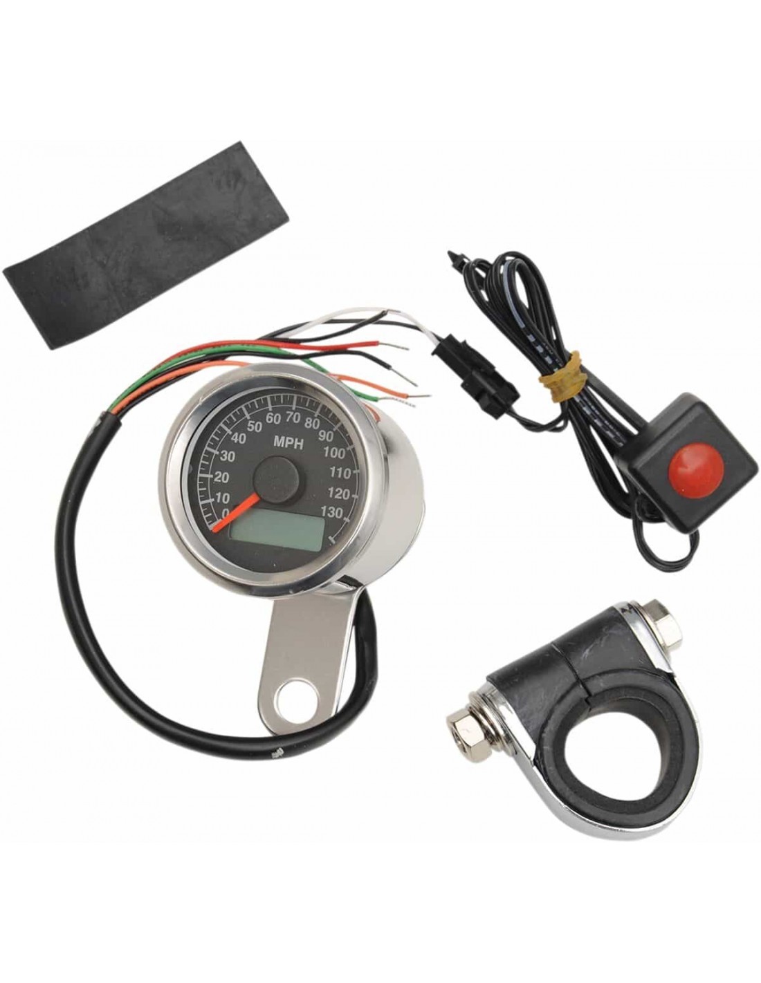 Drag SpecialtiesTachimetro elettronico mini programmabile con odometro/contachilometriProgrammabili con qualsiasi unità di trasmissione che invia 3.000 – 90.000 impulsi per miglia (EU: 1,61 km) Presentano un display retroilluminato da 12 V LED Odometro digitale con due contachilometri parziali resettabili L'interruttore remoto a tasto singolo consente di passare facilmente dall'odometro al contachilometri parziale Compatibile con tutti i sensori 95-03 OEM e con la maggior parte dei sensori dell'aftermarket Contagiri abbinato disponibile separatamente - vedere prodotti correlati