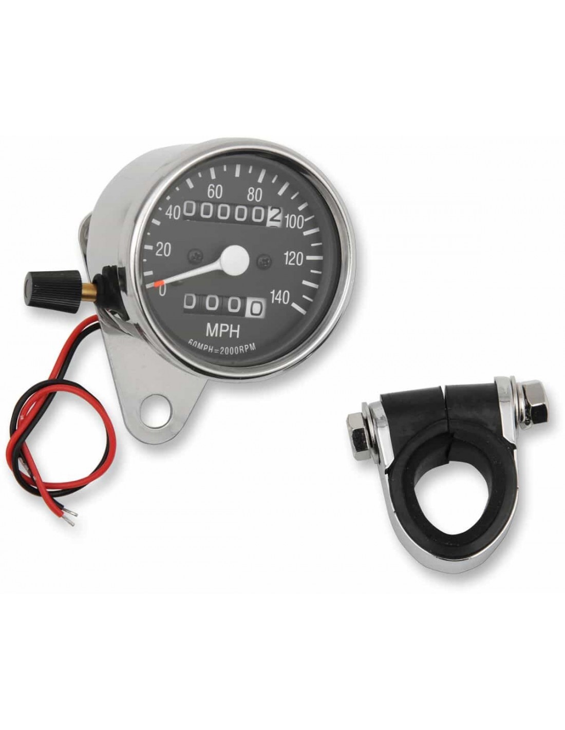 Drag SpecialtiesTachimetro meccanico mini da 2,4"Resistente all'acqua e alle vibrazioni Compatibile con cavo da 12 mm Retroilluminazione con lampadina da 12 V; lampadine di ricambio disponibili separatamente Contagiri mini Drag Specialties abbinati disponibili separatamente Il chilometraggio non può essere resettato sui tachimetri < /br>Per modelli FL, FLH, FX e FXE utilizzare l'adattatore cavo cod 2210-0062 con cavo di serie (solo azionamento trasmissione) - vedi componenti correlati