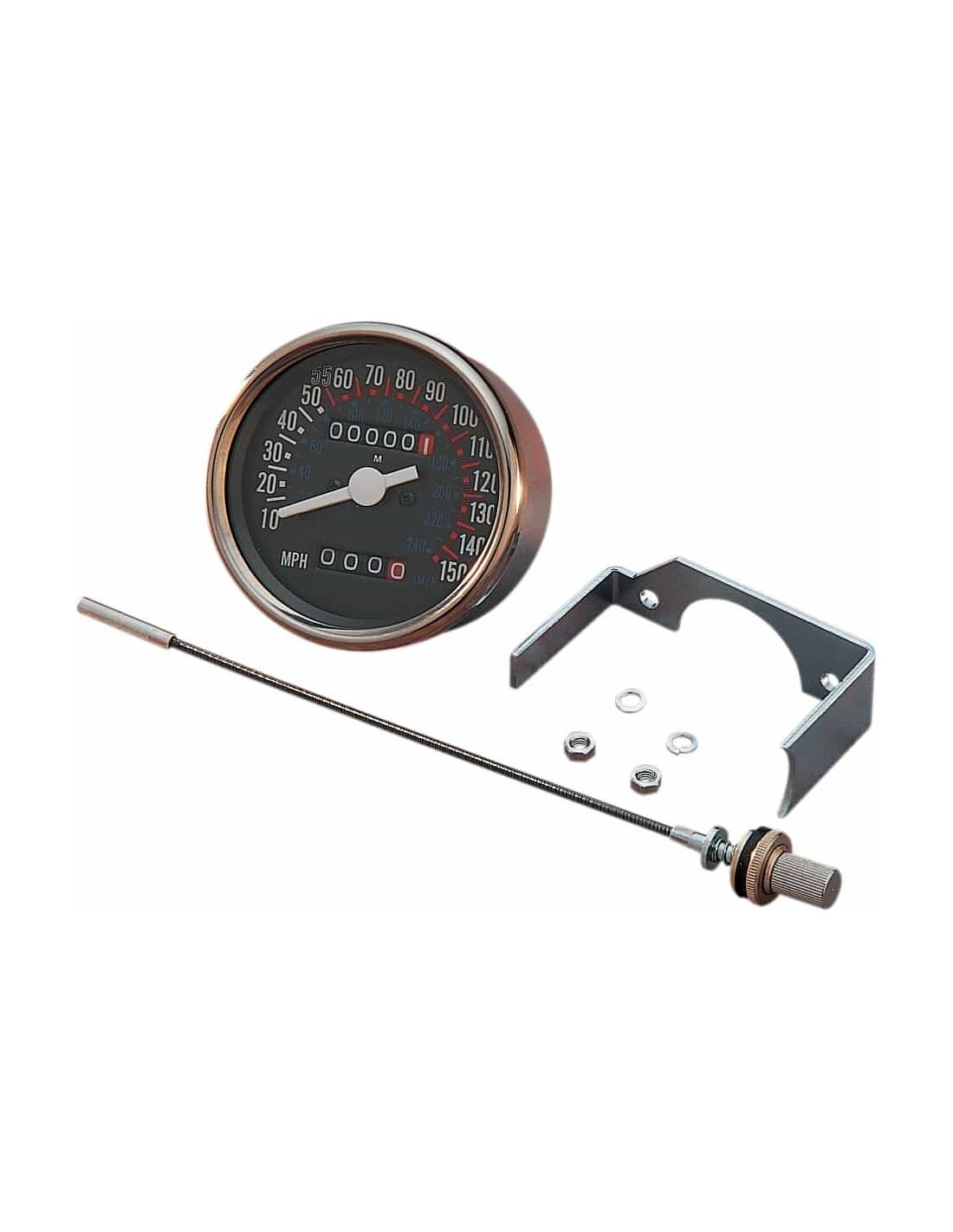 Drag SpecialtiesTachimetro da 150 mph con dimensioni di 3-1/8" per il montaggio sul cruscottoL'unità di testa del contagiri di ricambio 2:1 è dotata di set contachilometri, lampadina e attacco< /li>Non per FXE con anno di produzione dal 1983 alla prima metà del 1984.