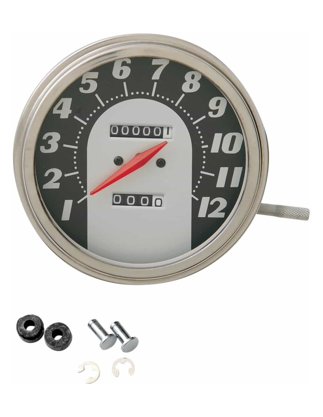 Drag SpecialtiesTachimetro 1:1 stile FL da 5"I tachimetri presentano filettature di 5/8”-18 I tachimetri includono una rotella azzeramento tachimetro < li>La resa chilometrica non può essere resettata sui tachimetri.