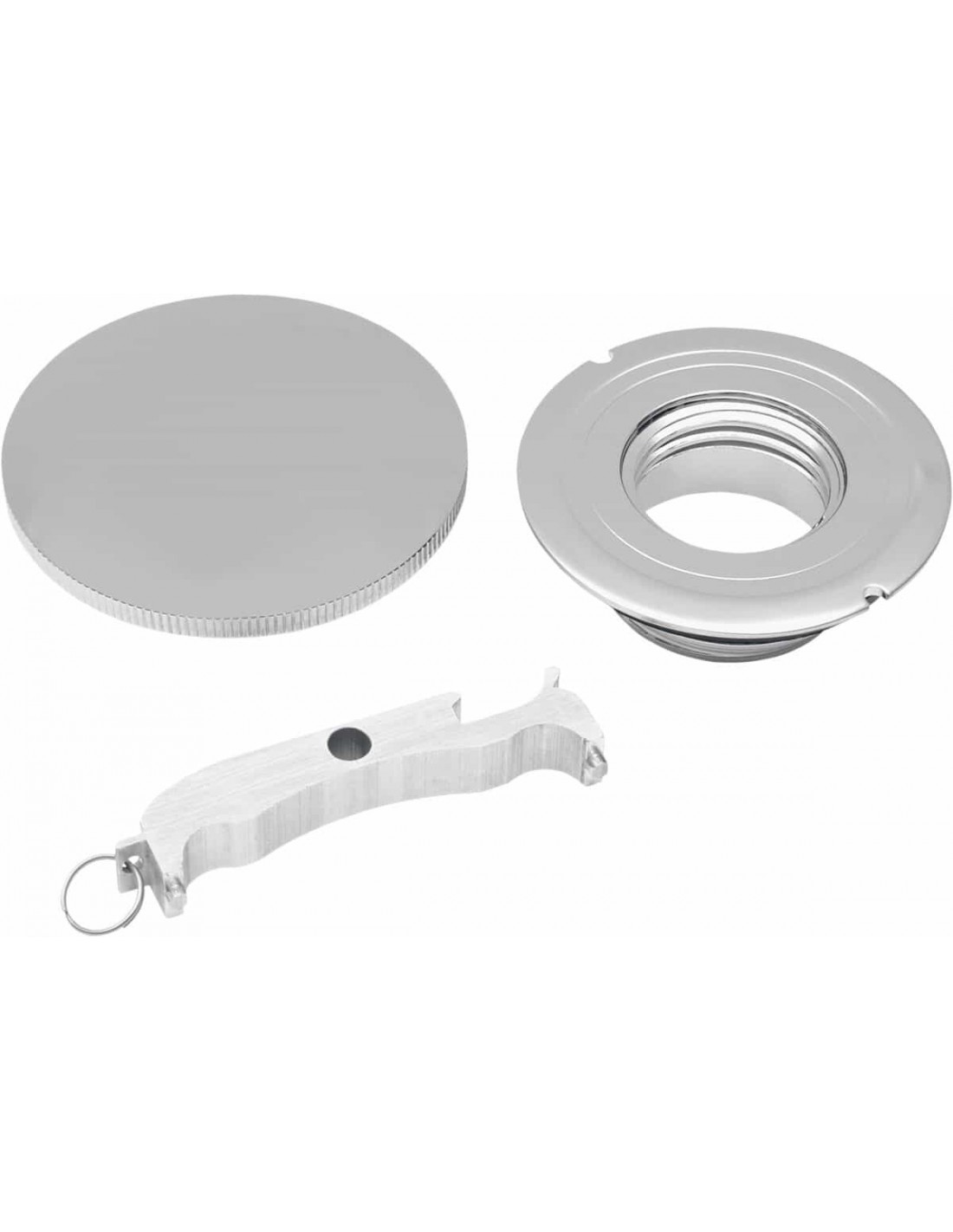 Tappo serbatoio con protezioni per verniceFornito con l'utensile necessario per installare la protezione vernice Tappo serbatoio cromato a basso profilo < /br>Con protezioni in vernice da avvitare e tappo a cricchetto Può essere utilizzato come tappo sinistro nei serbatoi a due tappi