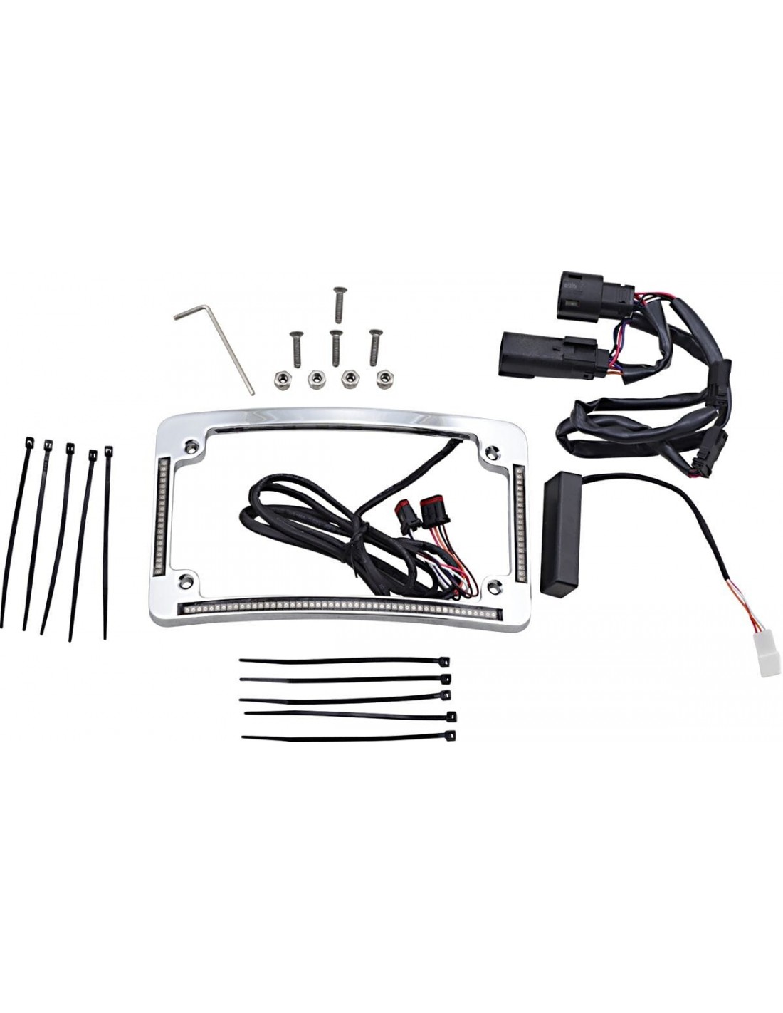 Custom DynamicsCornice portatarga ricurva con luce di marcia/freno/indicatore di direzione led a installazione rapicornice portatarga orizzontale a basso profilo in alluminio (curvatura di 12 gradi) 20 led ambra su ciascun lato 50 led rossi a intensità doppia montati a incasso su ciascun lato che funzionano come luce di marcia, freno e svolta (alcune applicazioni funzionano solo come marcia/svolta) installazione plug& gioca materiale per il montaggio incluso conferma la staffa di montaggio portatarga prima dell'acquisto. La staffa di montaggio oem deve essere modificata in funzione della cornice portatarga per un montaggio corretto. La cornice portatarga richiede un attacco curvato di 12 gradi.