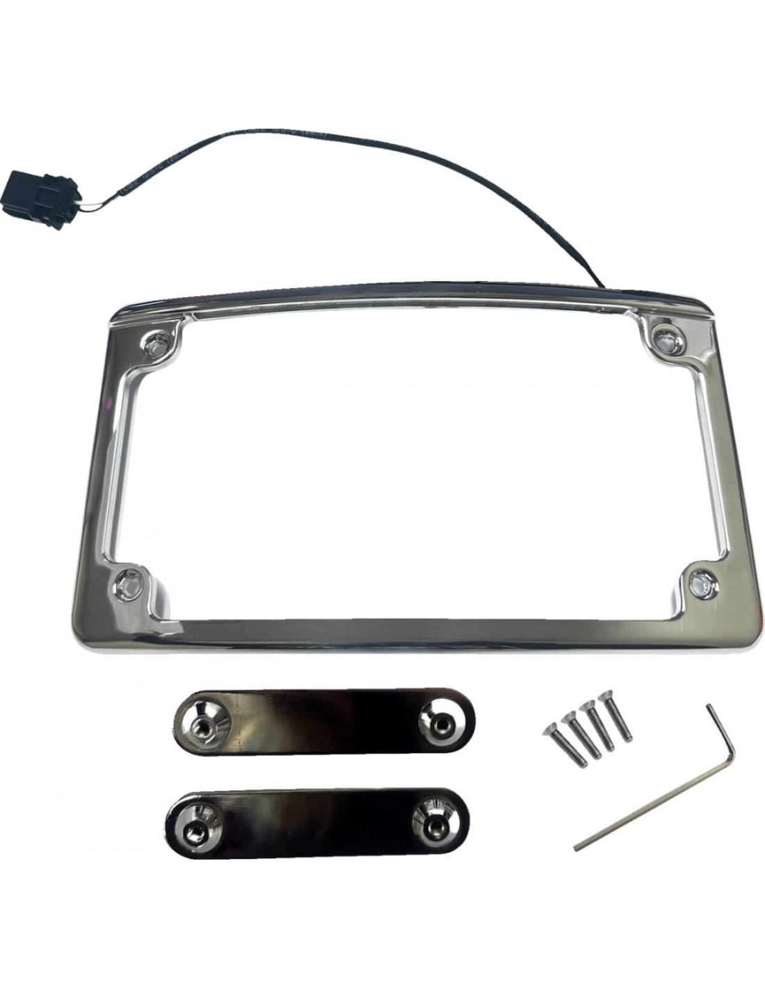 Custom DynamicsCornice targa con raggio illuminatoadatto a targhe motociclistiche standard da 4" x 7" dotato di connettore plug and play per un semplice collegamento per l'illuminazione della targhetta hardware di montaggio incluso richiede il supporto per targa, codice articolo 2030-1959 o 2030-1960 (venduto separatamente).