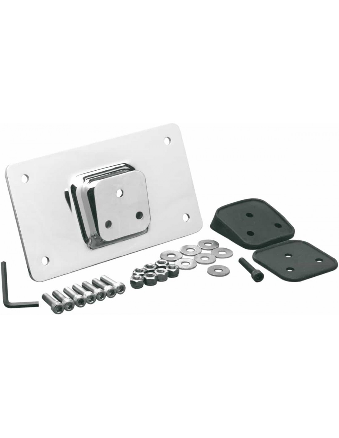 Attacco portatarga per parafangoIl supporto di 4" x 7" è dotato di guarnizioni doppie in gomma per aumentare o diminuire l'angolo del supporto a seconda delle esigenze Tutto il materiale necessario per il montaggio è incluso Si adatta alla maggior parte dei modelli con attacco portatarga montato sul parafango sopra la luce codone Compatibile con la maggior parte dei modelli '99-'20 con attacco portatarga sul parafango al di sopra della luce codone