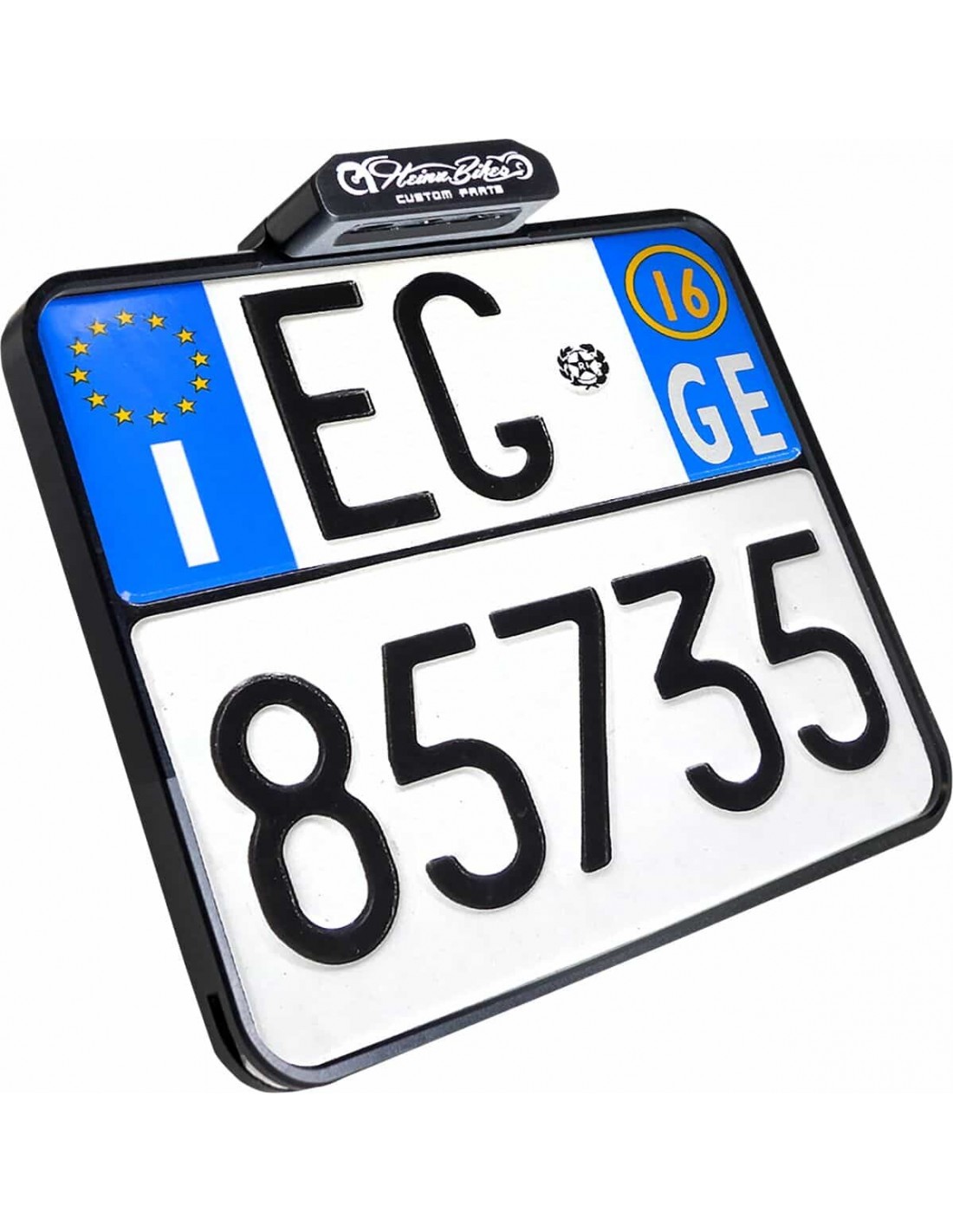 Heinz BikesPortatarga con luce posteriore integrataMontaggio senza viti della targa, grazie alla tecnologia SLIP-IN Frame Posatura cavi invisibile Opzioni di montaggio multiple Alluminio laminato con tecnologia CNC di alta qualità Notevoli finiture della superficie nere o cromate Disponibile in misure diverse per targhe di oltre 10 paesi europei Luce per targa con simbolo E Idoneo per tutti i modelli, i tipi e le marche di moto