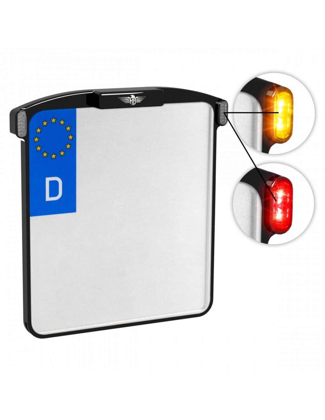 Heinz BikesPortatarga MicroDesign estremamente leggero, sottile e luminoso, semplicemente unico Solo leggermente più grande della targa Con la nuova tecnologia luminosa SMD- LED Sostituisce luci e indicatori di direzione posteriori grandi Con speciale apertura che consente di far scivolare la targa all'interno Disponibile di misure diverse per 10 Paesi europei Filettatura per l'installazione di una luce aggiuntiva Alluminio lavorato a CNC con finitura nera o cromata Tutte le unità LED presentano marcatura “E”< /li>