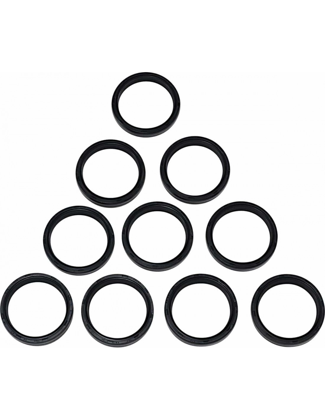 Paraolio/parapolvere forcella in confezioni da 10Design paraolio con brevetto in registrazione, in elastomero speciale con solo un terzo dell'attrito e una durata quattro volte più lunga rispetto a un paraolio OEM li>La struttura con doppio giunto sigillante consente di mantenere in equilibrio la resistenza fluidodinamica dei due giunti, prolungando così la durata e ottimizzando la temperatura di esercizio