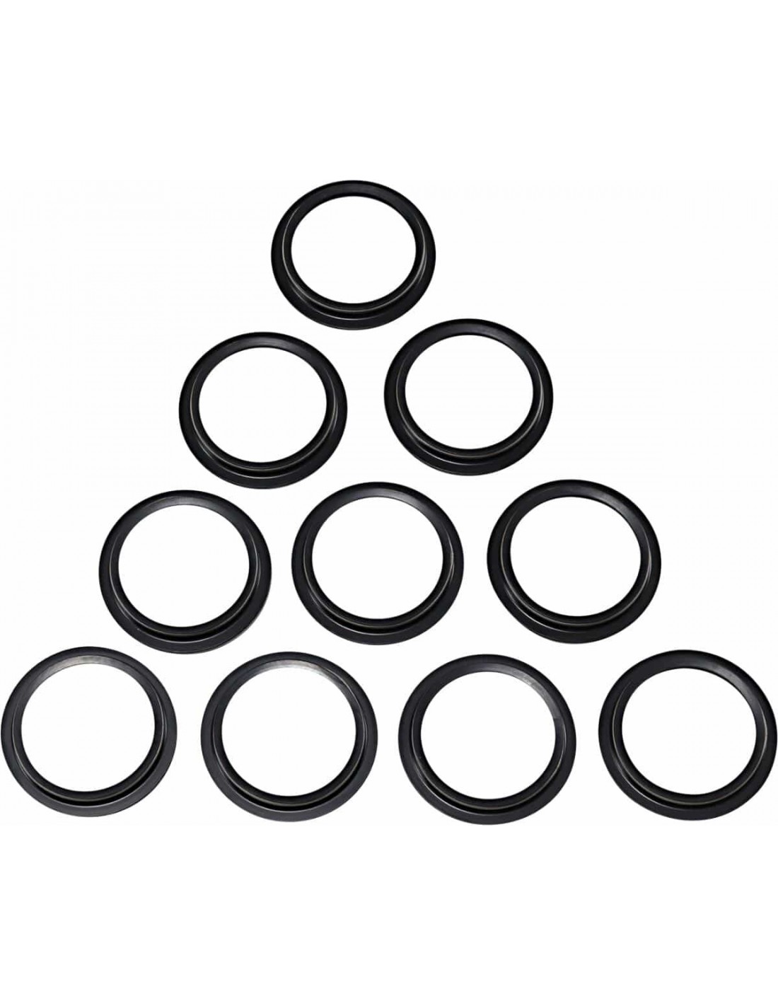 Paraolio/parapolvere forcella in confezioni da 10Design paraolio con brevetto in registrazione, in elastomero speciale con solo un terzo dell'attrito e una durata quattro volte più lunga rispetto a un paraolio OEM li> La struttura con doppio giunto sigillante consente di mantenere in equilibrio la resistenza fluidodinamica dei due giunti, prolungando così la durata e ottimizzando la temperatura di esercizio