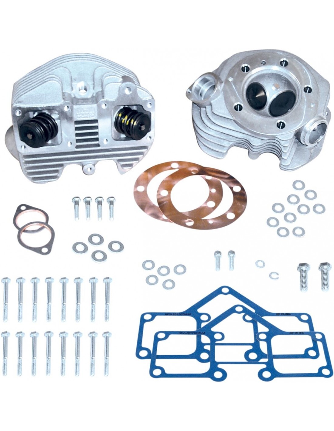 S&S CycleKit testa cilindro super stock™le prove vengono fornite completamente montate con sedi valvola, valvole, guide, paraoli, molle valvola con alzata di 590", collari e fermi valvola i kit completi comprendono anche le guarnizioni del coperchio bilancieri, le guarnizioni testa e diversi materiali di montaggio con le istruzioni usano i raccordi e l'impianto di scarico oem made in gli stati uniti