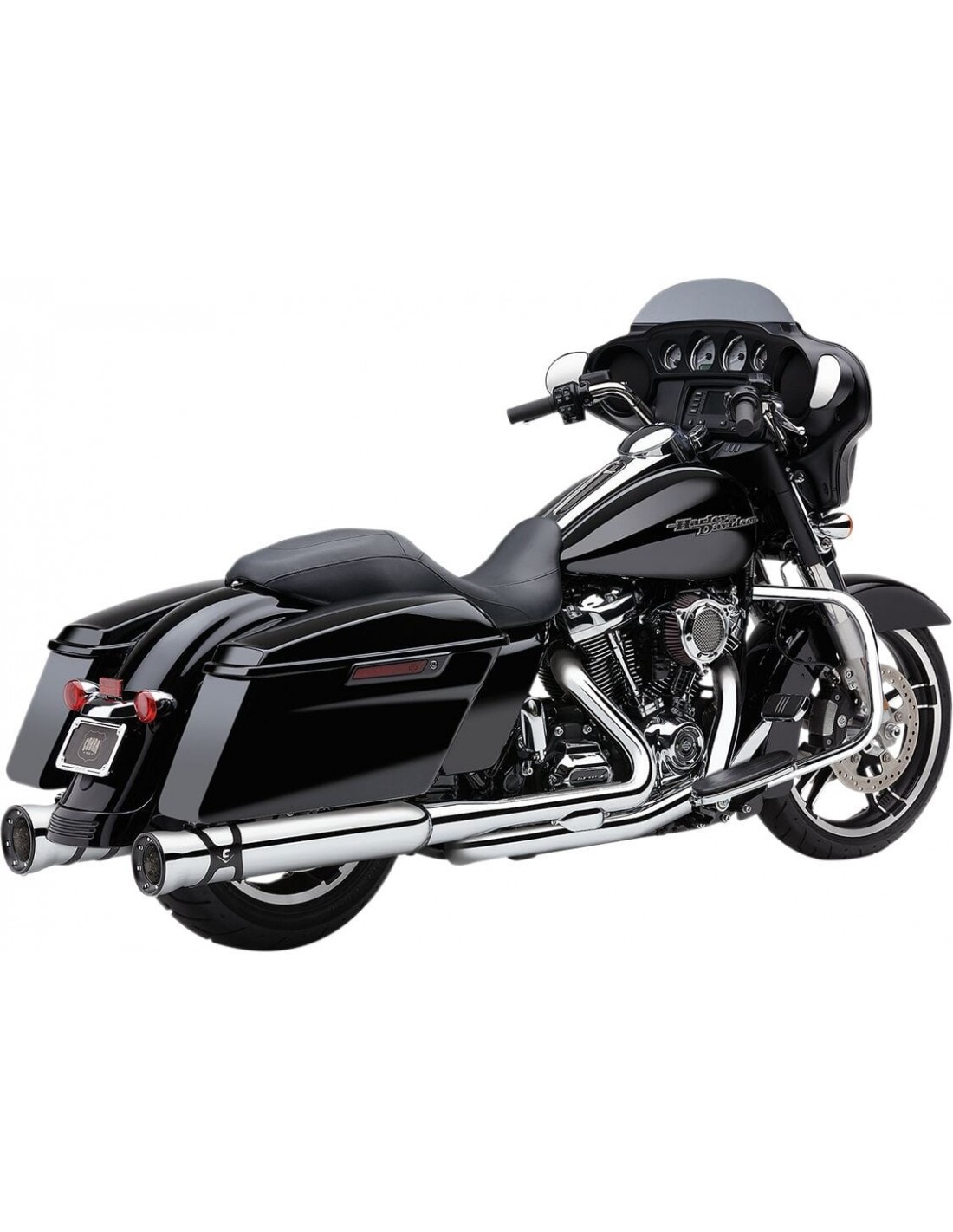 CobraCollettori pro chamber con attacco doppioper il motore milwaukee eight, cobra ha modificato powerport allargandolo in modo da rendere una fotocamera ad impulsi che accelera il ritorno dello scarico per produrre la potenza che i piloti presuppongono la forma tonda, che sporge tra le protezioni paracalore, dà un'idea del reale potenziale di potenza che offre include boccole da 18 mm vicino ai collettori, consentendo l'uso di sensori lambda a banda larga; ideali per l'uso con il nuovo autotuner harley-davidson i silenziatori hd di serie non funzionano con questo collettore a causa della struttura interna del silenziatore di serie. Compatibile con la maggior parte dei silenziatori aftermarket