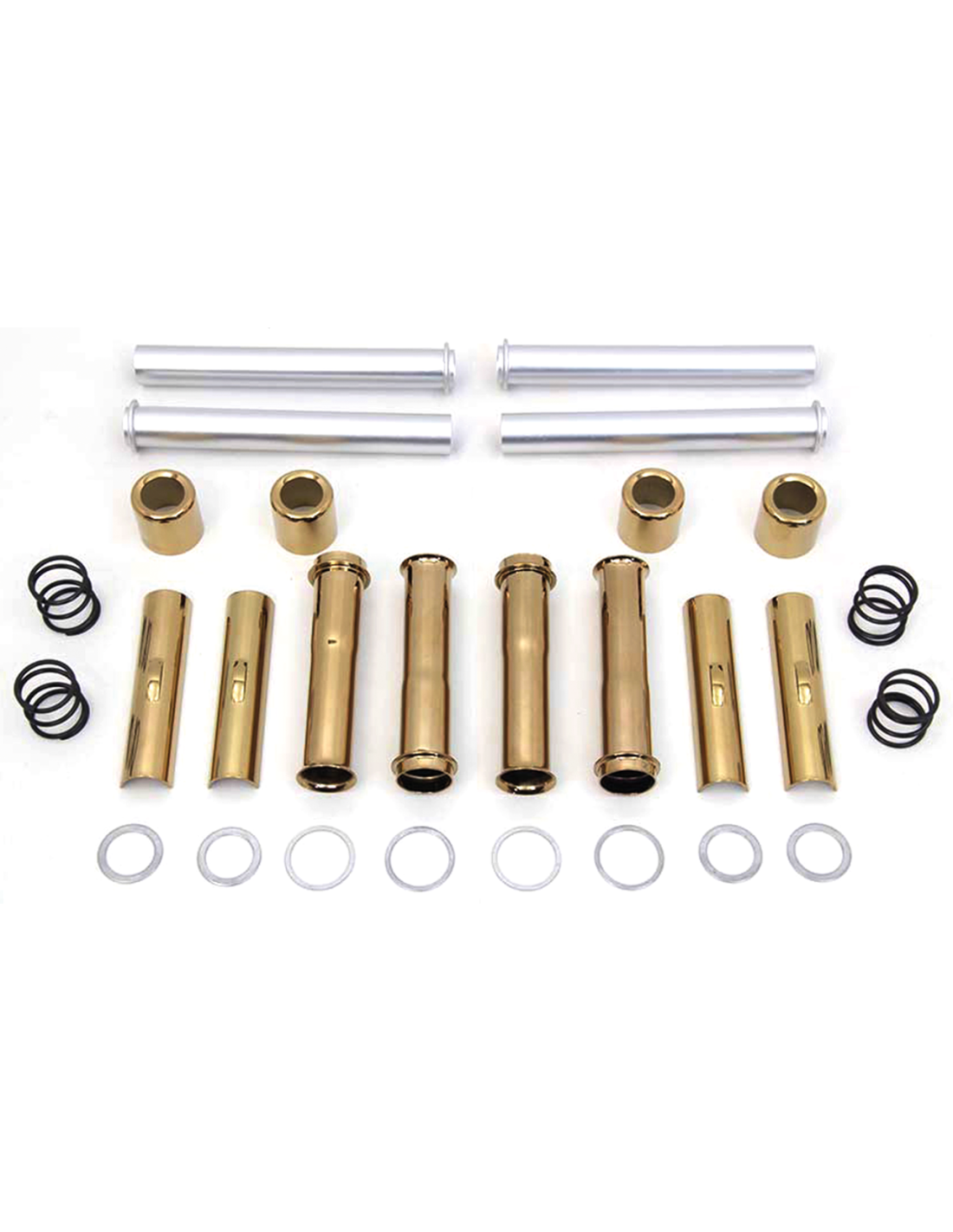 I kit hanno un aspetto simile al titanio e comprendono quattro di ogni guarnizione, molla, coppa, coperchio interno, superiore e inferiore e funzionano con aste fisse di serie e aftermarket, oltre che con aste regolabili.