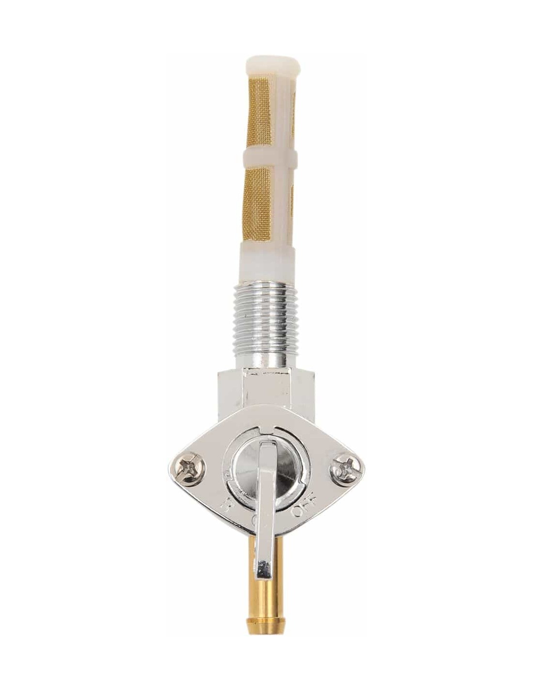 Drag SpecialtiesRubinetto benzina con filettatura NPT da 1/4"Interruttore a tre posizioni (on/off/riserva) Cromato con filtro protettivo Presenta un'uscita di carburante da 1/4" Compatibile con kit di riparazione rubinetto benzina 1/4" NPT (venduto separatamente) - vedere prodotti correlati