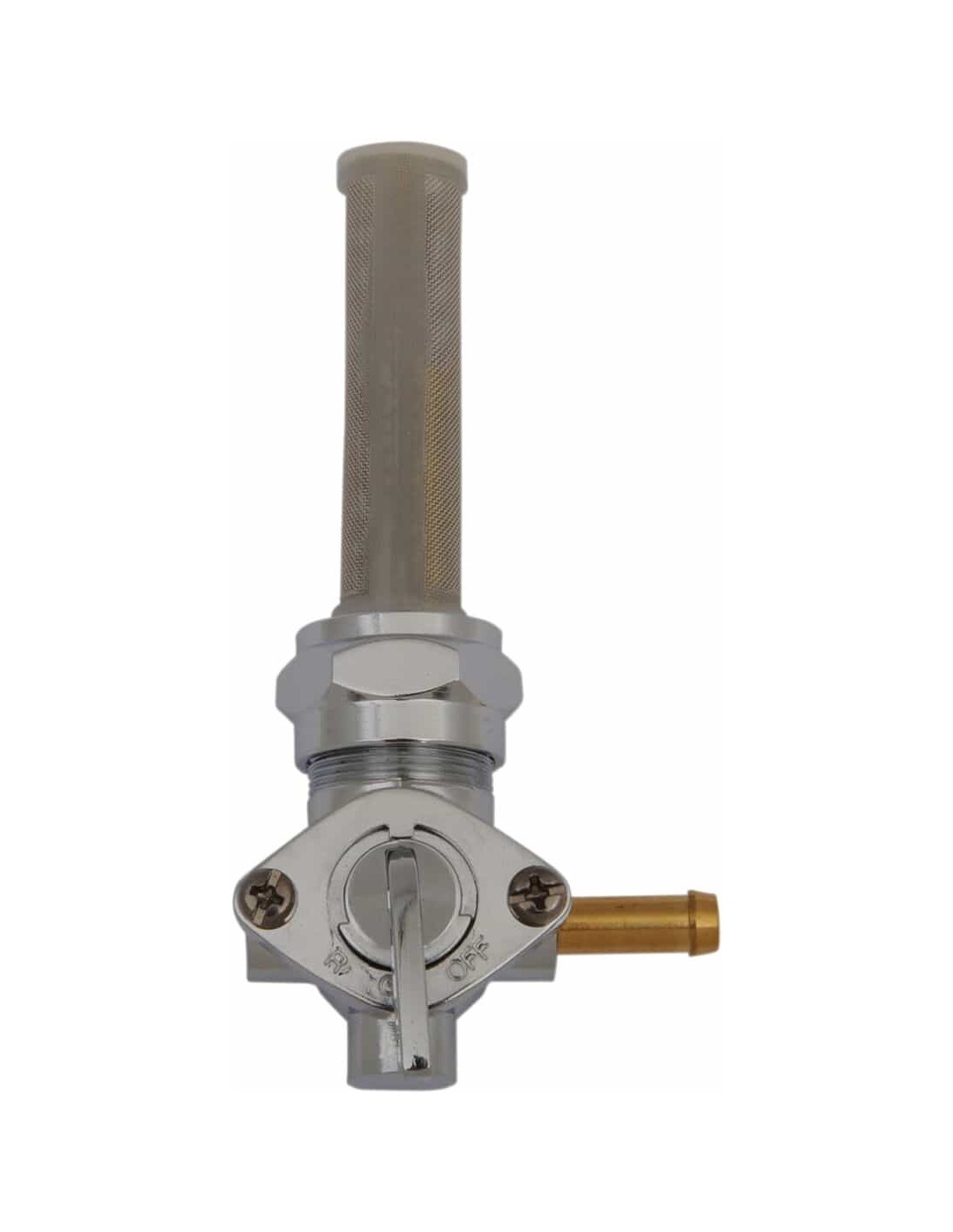 Rubinetto benzina cromato del tipo più recenteCon filtro protettivo, leva di comando a tre posizioni e alto flusso di carburante Attacchi filettati da 22 mm < /br>
